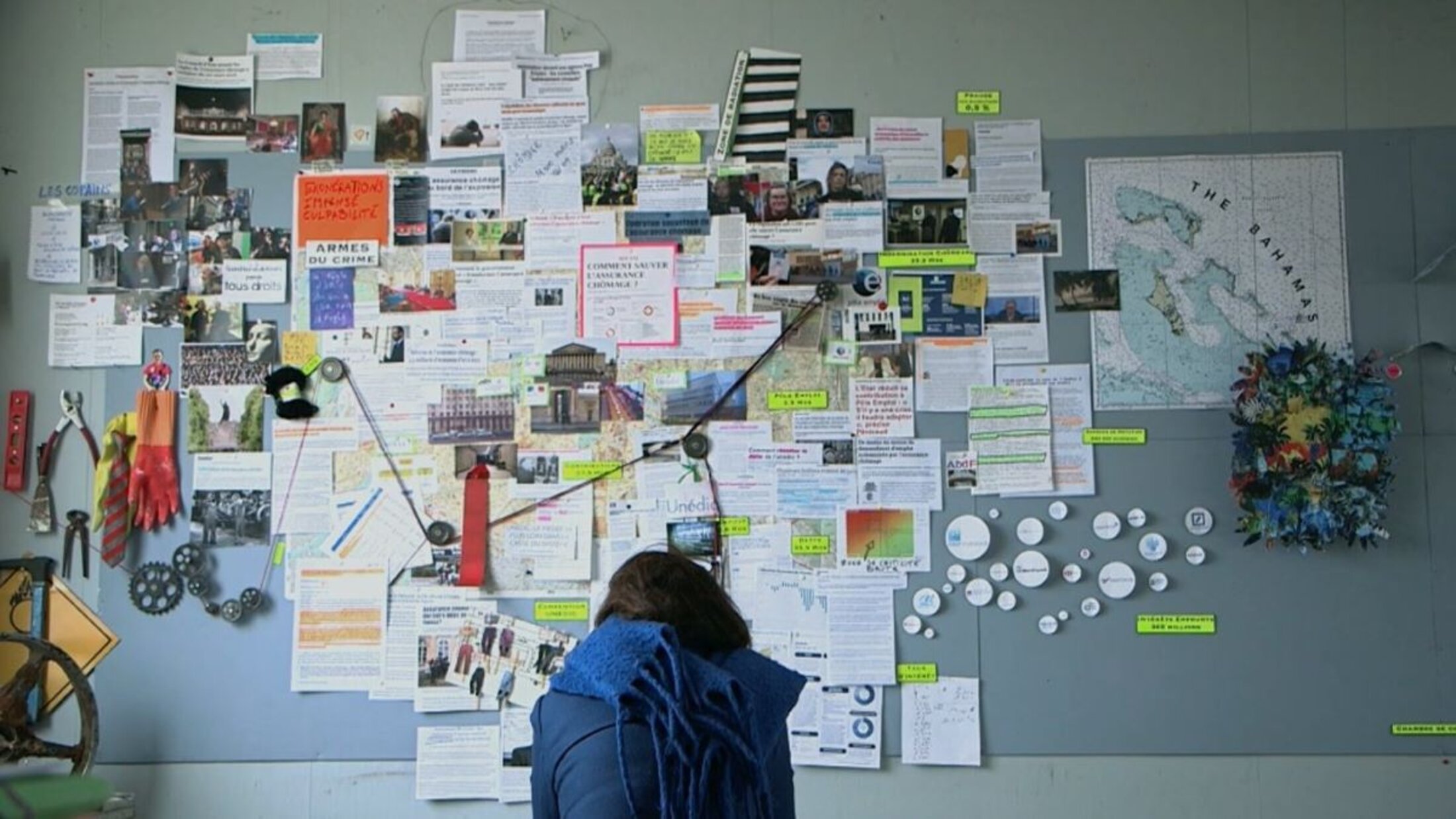 Hélène Crouzillat décide de mener sa propre enquête et débute dès 2016 jusqu'en 2024 une investigation pour comprendre de l'intérieur un fonctionnement fait d'acronymes et d'expressions économiques et juridiques abstraites. Comme une enquête policière cherchant à découvrir un crime organisé, elle filme sur un mur une carte de Paris où elle va relier entre eux les différents lieux de pouvoir et de décision dans la transformation de la caisse chômage dont le financement a été placé depuis quelques années rien moins que sur la place des marchés : la dette génère ainsi de l'argent puisqu'elle est ainsi achetée par divers actionnaires inconnus par les hauts fonctionnaires de l'État.