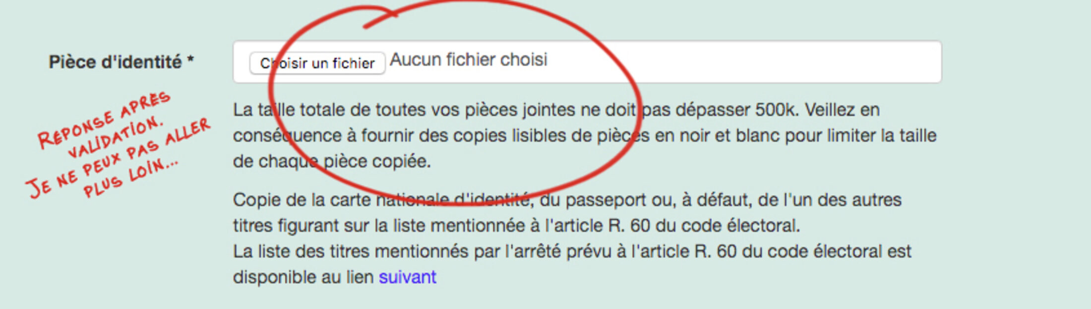 Je pense aux personnes âgées encore motivées pour participer à la vie de la citée mais beaucoup moins pour s'adapter aux outils informatiques ; aux mairies des petites communes qui n'ont pas l'air très au fait pour le moment de l'existence de ce document, aux actifs (comme moi) qui prennent sur leur temps de boulot pour se débattre avec ce formulaire (pour finalement échouer à valider leur signature) et qui, s'ils en ont fait la pub dans la famille, vont devoir remplir celui de papa, maman, pépé, tatie, etc... c'est mission impossible.