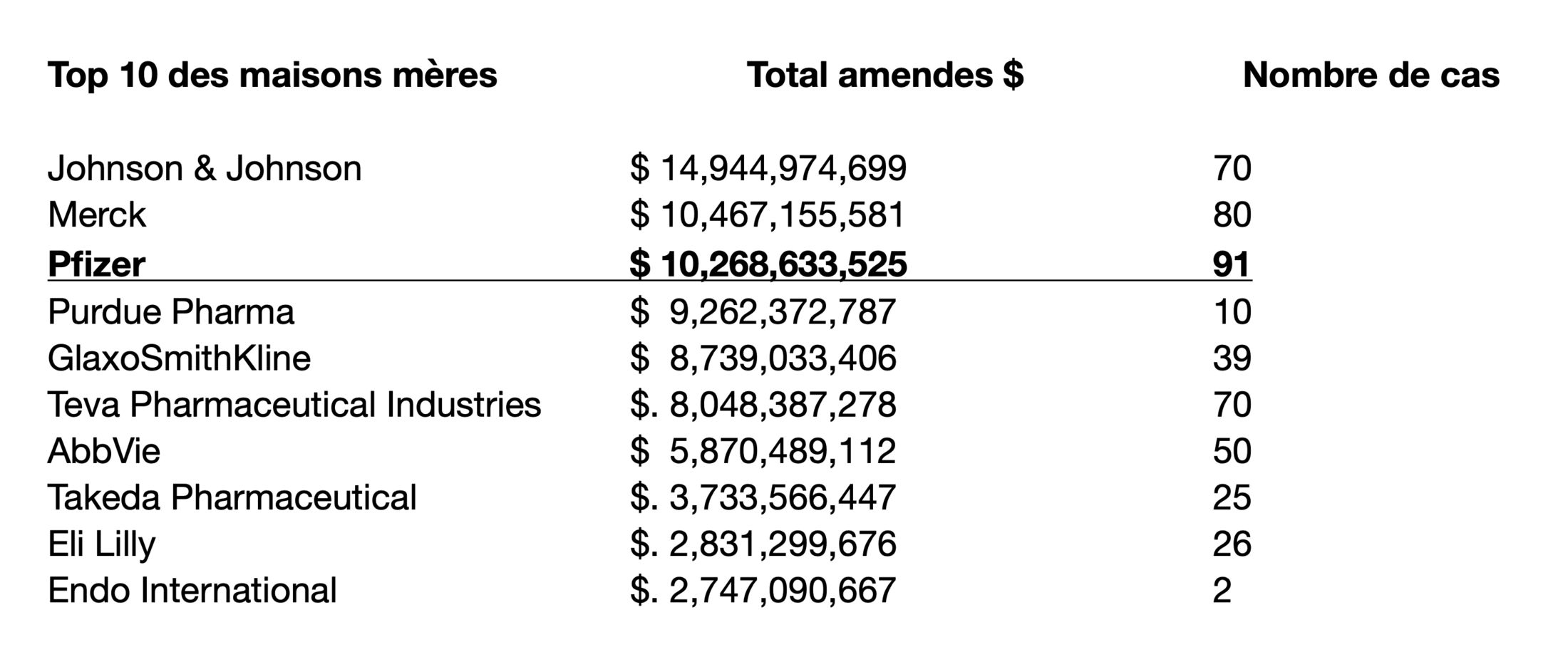Vous pouvez vérifier ces chiffres sur le site de référence et de surveillance des Pharmas américains : Violation Tracker Industry