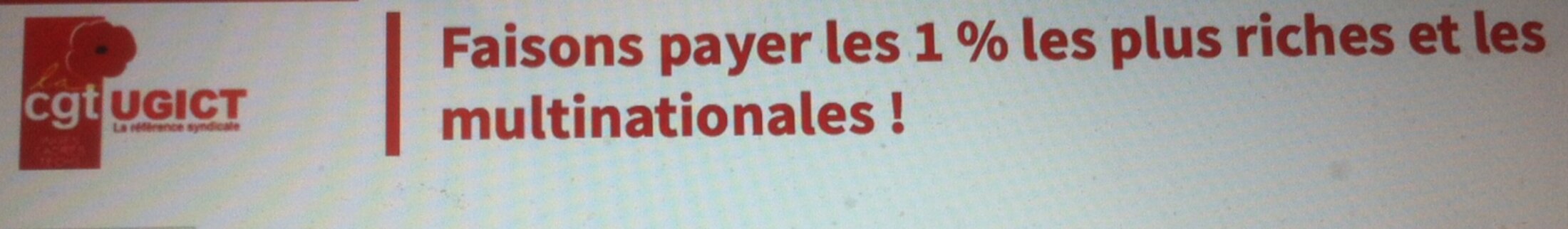 A l’occasion du rapprochement inédit ce 5 février 2019 entre Gilets jaunes et syndicalisme de lutte (donc pas tous les syndicats) (lire1), l’ UGICT-CGT - syndicat de cadres - mobilise sur le thème de la justice sociale et fiscale l’ensemble du peuple-classe (et surtout tous les salariés du public et du privé des 99% ) contre le 1% et les multinationales (dites souvent FMN ou STN pour société transnationale).