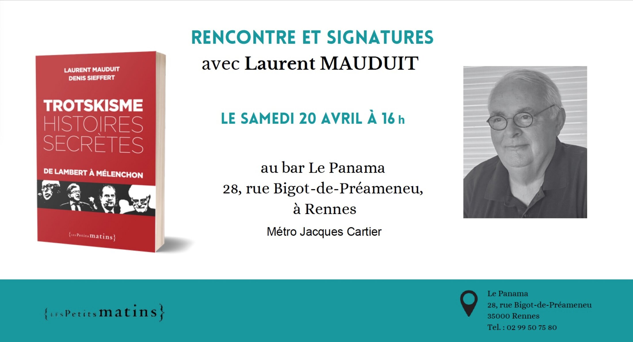 Après lecture de contributions sur Médiapart et ailleurs sur Politis, sur Regards etc... et lecture de son livre co-écrit avec Denis SIEFFERT, je me suis déplacé dans son coin de Bretagne (22) et j'ai rencontré et invité Laurent Mauduit à venir débattre au bar rennais LE PANAMA le 20 avril 2024 (à 16 h) de