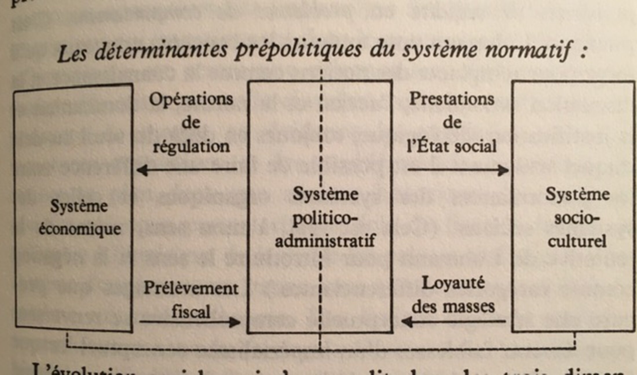 La théorie des systèmes dit Habermas en début du livre cité conçoit chaque système social à partir de son centre de régulation. Pour Habermas - qui offre un schéma page 17 - le centre du système est le système politico-administratif. Ce schéma présente d’un côté le système économique et de l’autre ce qu’il nomme le système socio-culturel, lequel reçoit des prestations de l’Etat social et en retour donne démocratiquement de la « loyauté des masses ». Ce « retour » donne sens à une conception.