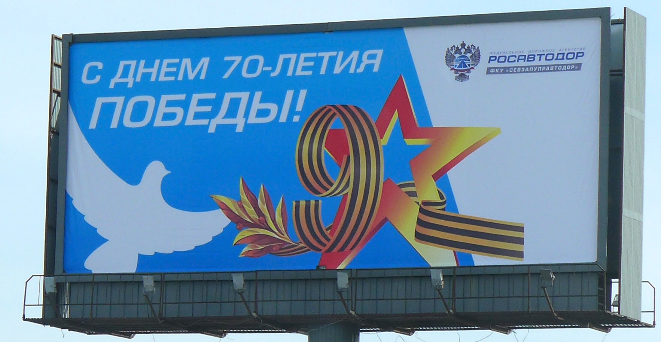 On retrouve dans cette affiche du service des routes de la Russie, un véritable kaléioscope des symboliques : une colombe de la paix chère à Picasso, une branche de lauriers césarienne, le ruban de St Georges tsariste et une étoile évidée de l'Armée rouge.