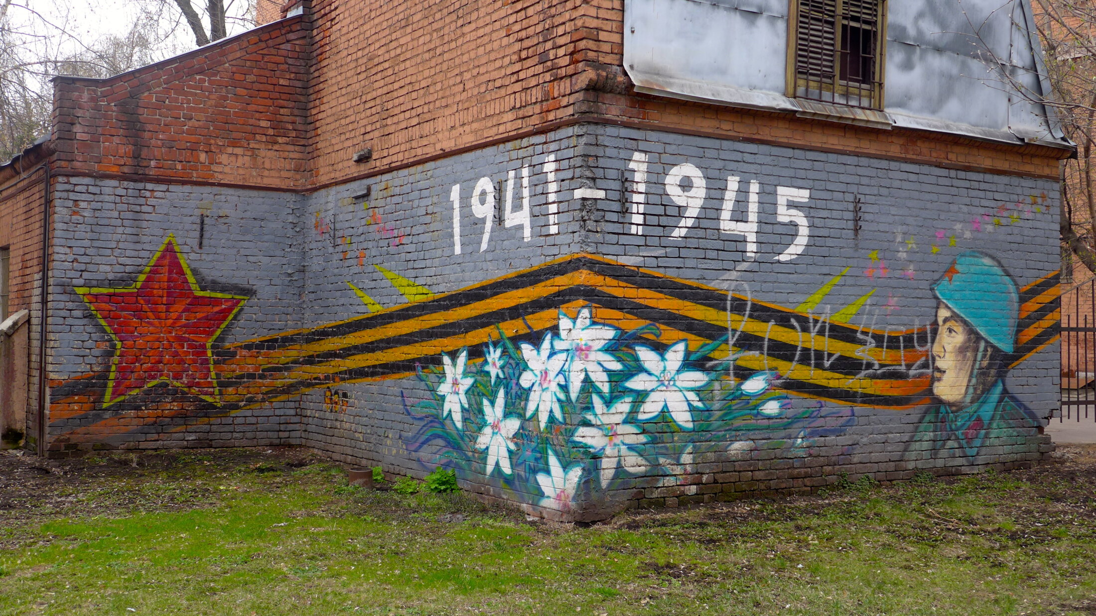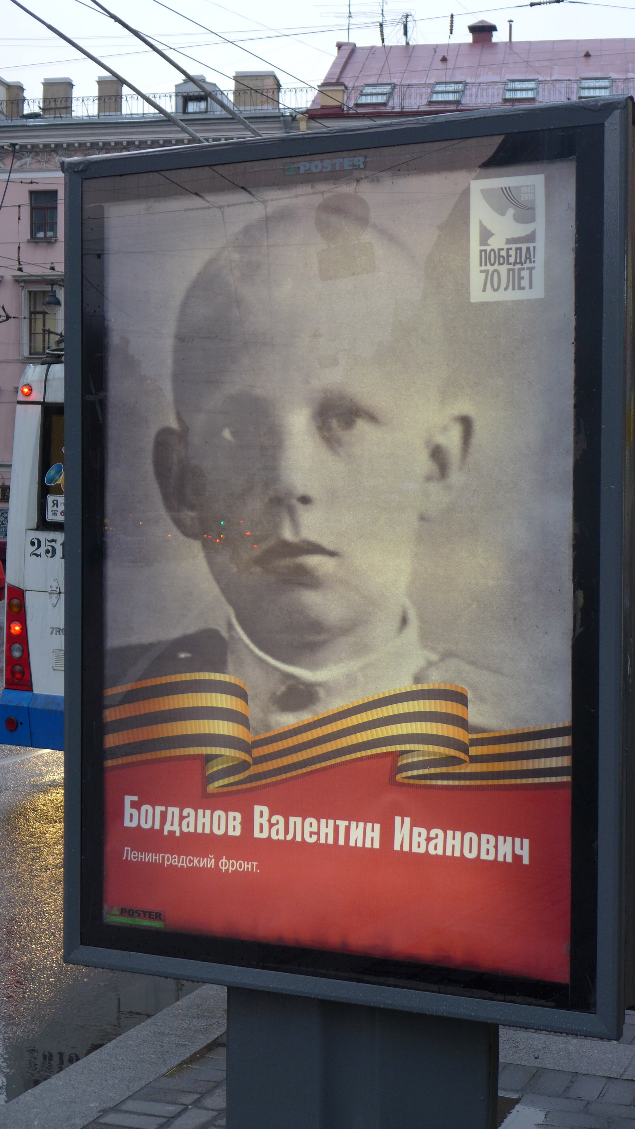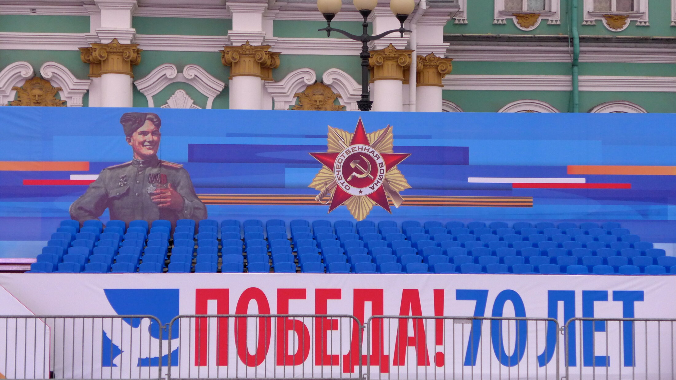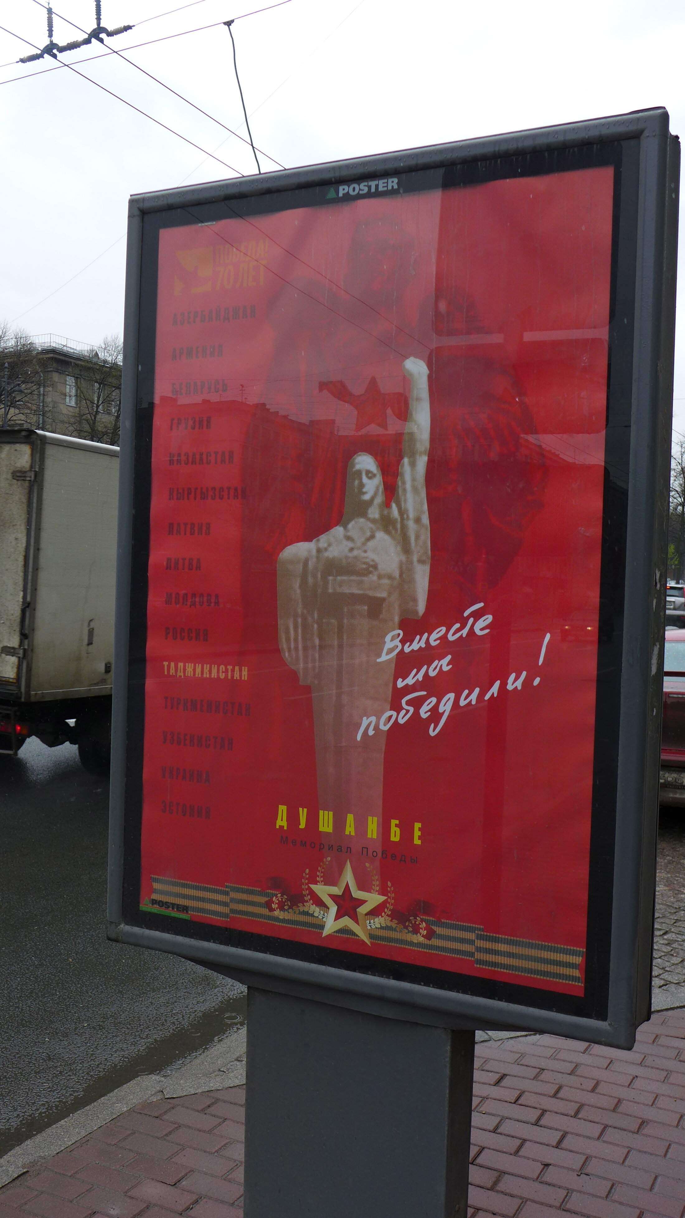 même sur sur celles qui rappellent que c'est l'Union soviétique qui a combattu et pas seulement la Russie. Dans ce cas le ruban est plus discret et l'affiche est dominée par le rouge.
