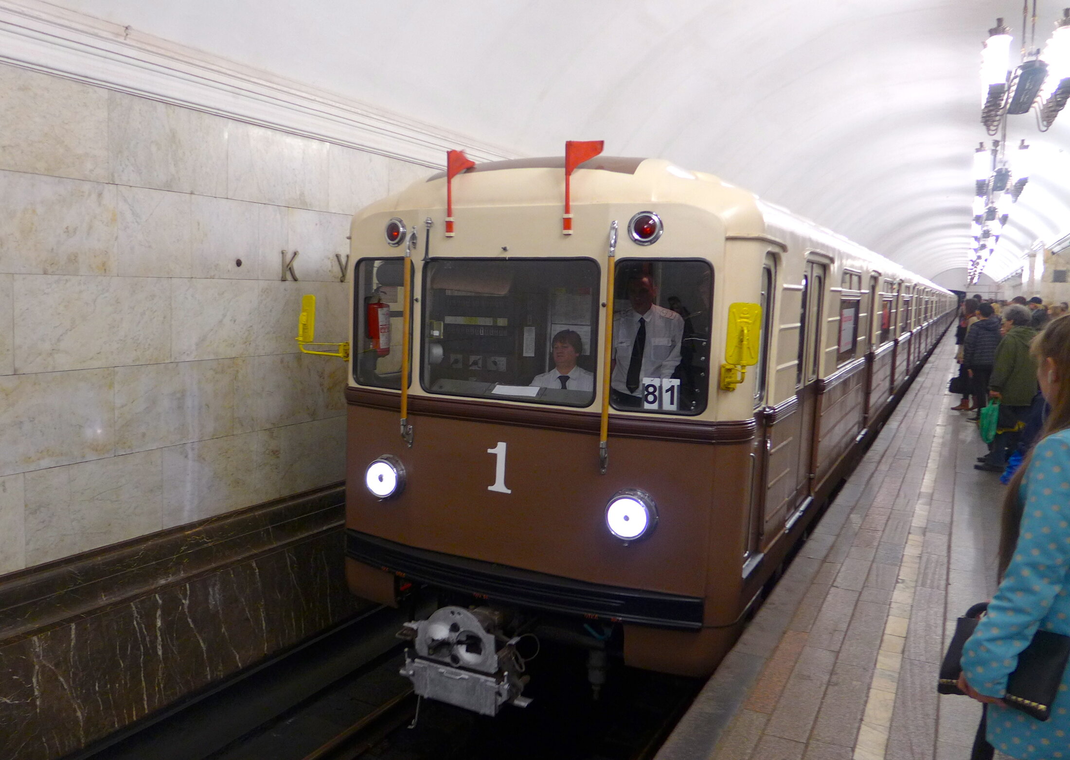 Construit sur ordre de Staline, qui avait confié la tâche à Kaganovitch, de 1932 à 1935, le métro était envisagé comme la vitrine souterraine du communisme et de la Nouvelle Moscou. Rien n'était trop beau pour l'aménagement des premières stations, monumentales, dont les murs et les sols étaient couverts de marbre. L'éclairage était luxueux, les mosaïques réalisées par les plus grands artistes de l'époque étaient à la gloire du communisme et des réalisations de régime. Un vrai temple réaliste socialiste du communisme, de ses héros et de son guide Staline qui inaugura personellement le métro.Voir http://www.youtube.com/watch?v=myzh4OHWkyM