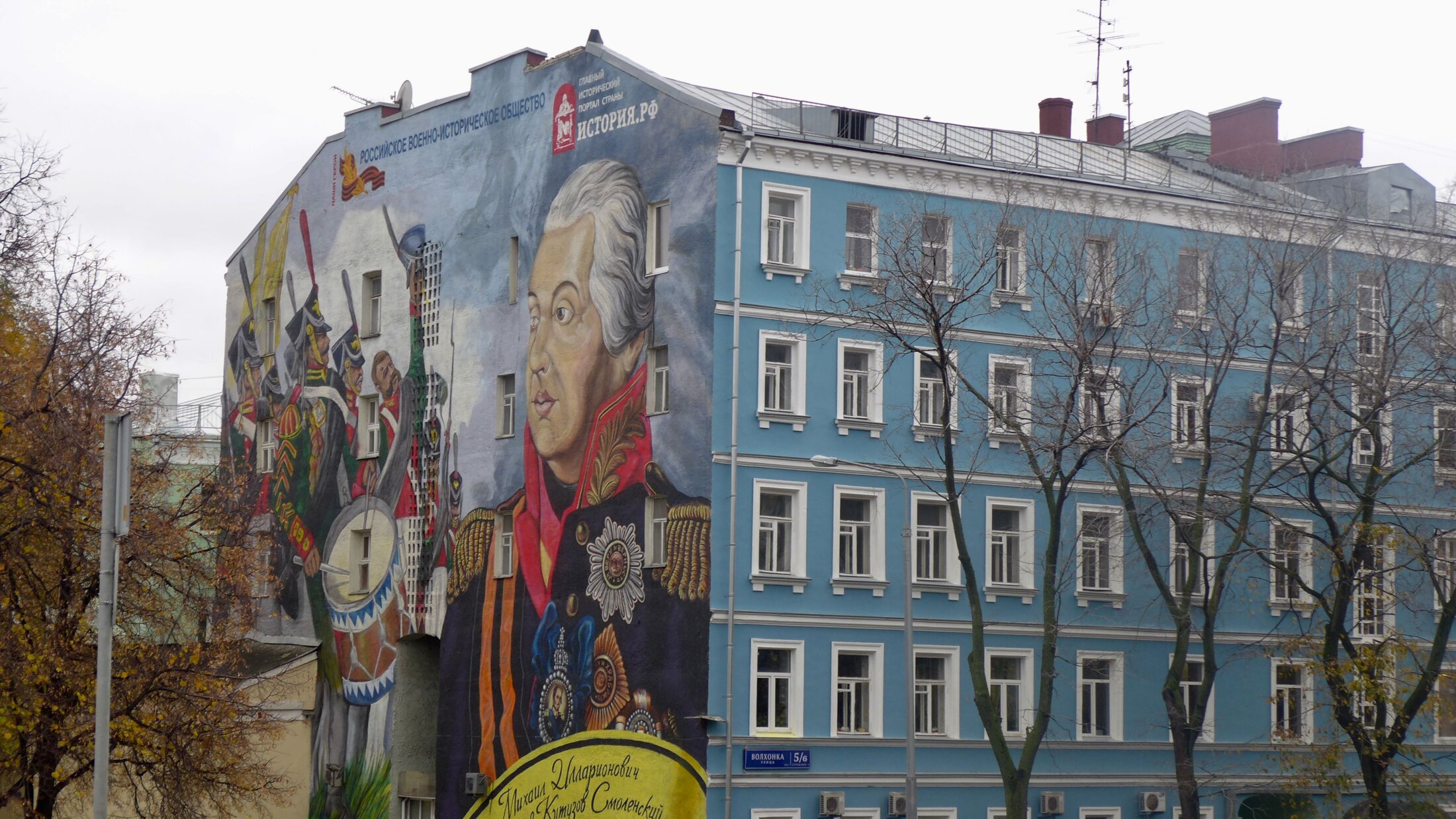 Je quitte le métro Métro Arbat (Voir le reportage de Moskva 24 d'août 2017 ) pour rejoindre le pont du Kremlin et là apothéose, en face de la forteresse rouge, les grandes fresques patriotiques du portail internet historico-patriotique, Pojarkski et Minine, puis Koutousov et enfin la Grande guerre patriotique...