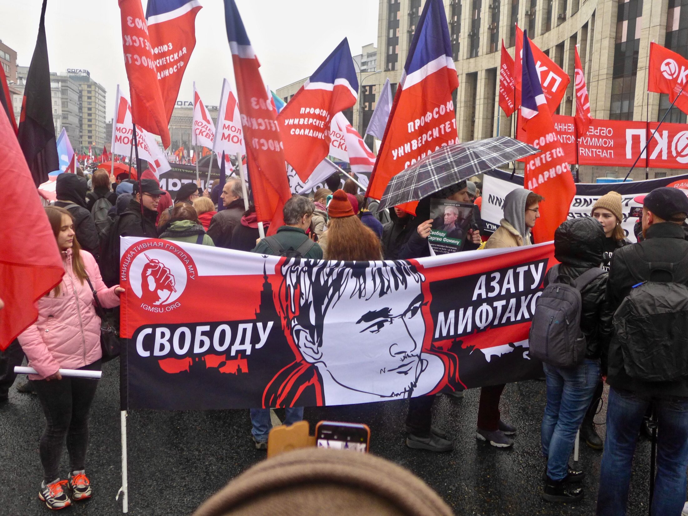 Sous une bruine très automnale, plus de 20 000 Moscovites se sont rassemblés ce dimanche 29 septembre à 15 heures avenue Sakharov, dans le péri-centre de Moscou. Cette manifestation autorisée par la Mairie de la ville, a vu affluer de nombreux participants qui après être passé sous les portiques de sécurité et être filmés par les caméras installées entre chaque portique, ont pu écouter les leaders de la contestation. Si les partis et les mouvements d'opposition étaient présents comme Iabloko, Solidarité, Drougaia Rossia, ou Lef Front, de nombreux jeunes souvent des étudiants portaient des portraits de prisonniers et ne nombreuses pancartes étaient artisanales. Parmi les prises de parole on notera celle d'Alexeï Navalvy qui ironisa sur la cagoule noire, des forces de sécurité, symbole de la terreur, en affirmant "Ils ont peur de nous". Sa chaine youtube Navalny live transmettait en direct le rassemblement https://www.youtube.com/watch?time_continue=1853&v=k26AcoBOiiY et rassembla plus de 180 000 vues pendant l'événement en direct. Après plus de deux heures de rassemblement la foule s'est dispersée dans le calme.