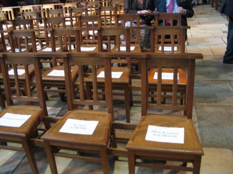La différence entre un reportage courant et une enquête sur le mode de l'investigation est que son auteur(e) procède en regardant aussi ce qui semble évident a priori, mais dont la juxtaposition de la relation avec d'autres faits, chiffres, propos, met en relief des éléments de compréhension du réel jusque là difficiles à repérer, à mettre en phase avec la partie connue du puzzle. La photo choisie pour illustrer ce thème a été prise par mes soins en septembre 2008 le jour de l'ordination du nouvel Evêque d'Angers, Mgr Emmanuel Delmas, où je cherchais à voir qui pratiquerait la politique dite de la chaise vide... En fait, il n'y avait pas assez de places assises, notamment pour la sphère politique et du monde des affaires. Une façon comme une autre d'investiguer sur le lien entre religion, morale, société et réalité des pratiques républicaines et personnelles par la suite pour les intéressés, occupant leurs chaises ce jour-là, dont quelques ministres d'Etat, un Préfet, plusieurs P-dg, banquiers, cadres sup mieux payés que beaucoup d'entre nous, pas nécessairement moins honnêtes que beaucoup, mais souvent assez peu conscients de ce que vivent les autres dans ce beau pays qu'est la France!