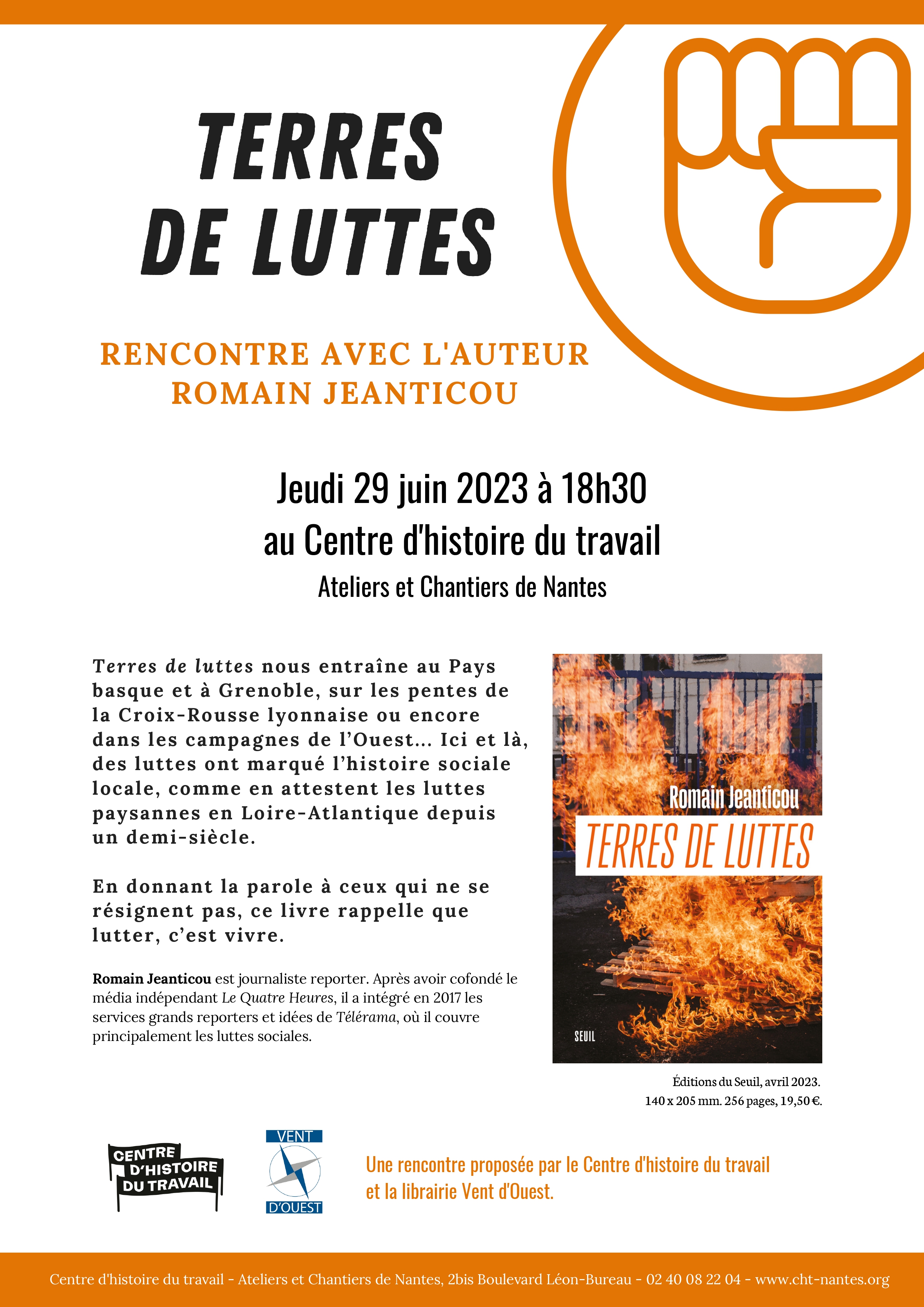 Romain Jeanticou sera l'invité du Centre d'histoire du travail de Nantes ce jeudi soir. Il y présentera son livre, Terres de luttes.