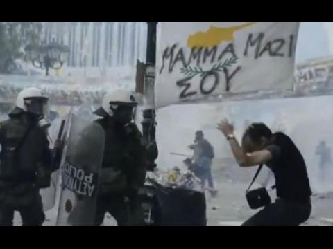 "Plusieurs milliers de manifestants se sont retrouvés dans le centre d'Athènes pour protester contre les politiques d'austérité néo-libérales du gouvernement, pendant que les ministres des finances de l'Union Européenne se retrouvaient dans la capitale. Charge de la police anti-émeute. Antonis Samaras, le premier ministre grec, a parlé de démocratie et de liberté dans le discours aux ministres des finances qui s'est tenu au musée de l'Acropole. Comme d'habitude, le centre d'Athènes était interdit aux manifestations. Comme d'habitude, des manifestations ont quand même eu lieu. Et comme d'habitude, la police anti-émeute (la MAT) et la section mobile (DELTA) ont usé de la matraque et des gaz lacrymogènes."
