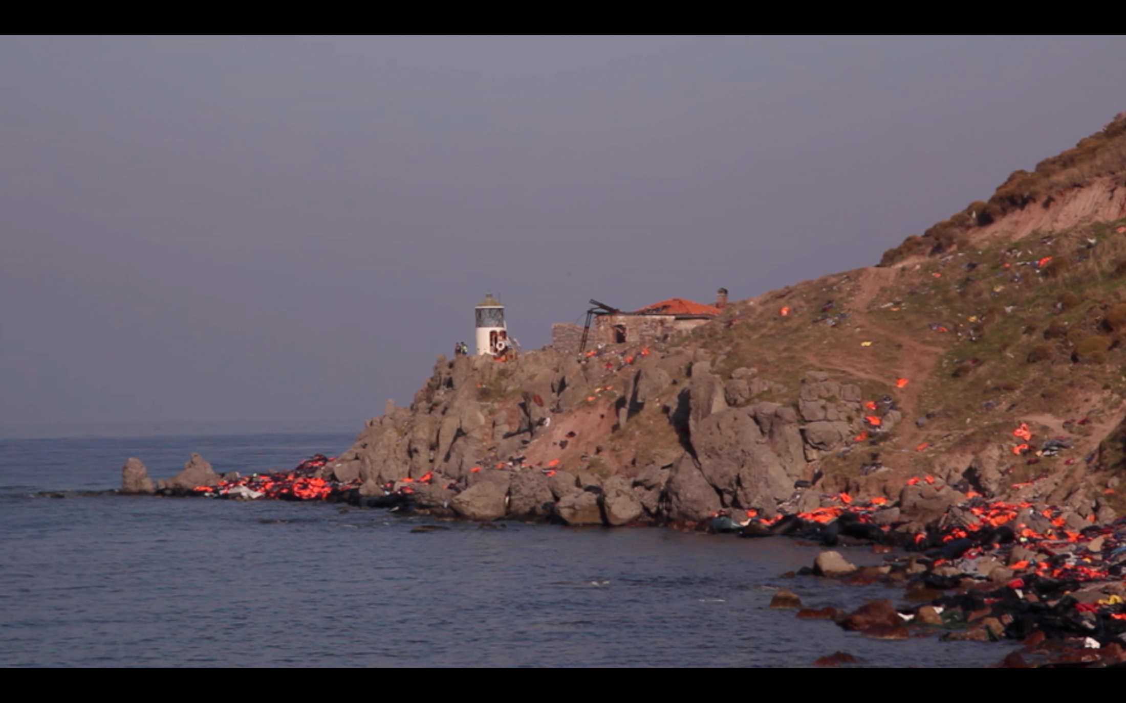 Les drames qui se déroulaient sous nos yeux – des centaines de femmes, hommes et enfants débarquant sur une plage, à la recherche d’une vie enfin supportable – nous ont naturellement captés, captivés. Pour nous autoriser à faire ce film, il nous a fallu sortir de ce rapt du regard, de cette fascination courante pour la souffrance. Il a donc fallu nous retourner, faire dos à la mer, inverser la question. En entrant dans les terres, nous nous sommes intéressés à ceux qui habitaient là et qui assistaient à ces arrivées quotidiennes depuis plusieurs années. En les écoutant, nous avons découvert qu’ils avaient beaucoup à dire. Notre documentaire est alors devenu un film sur les habitants de Kleio, petit village au nord de l’île de Lesbos.