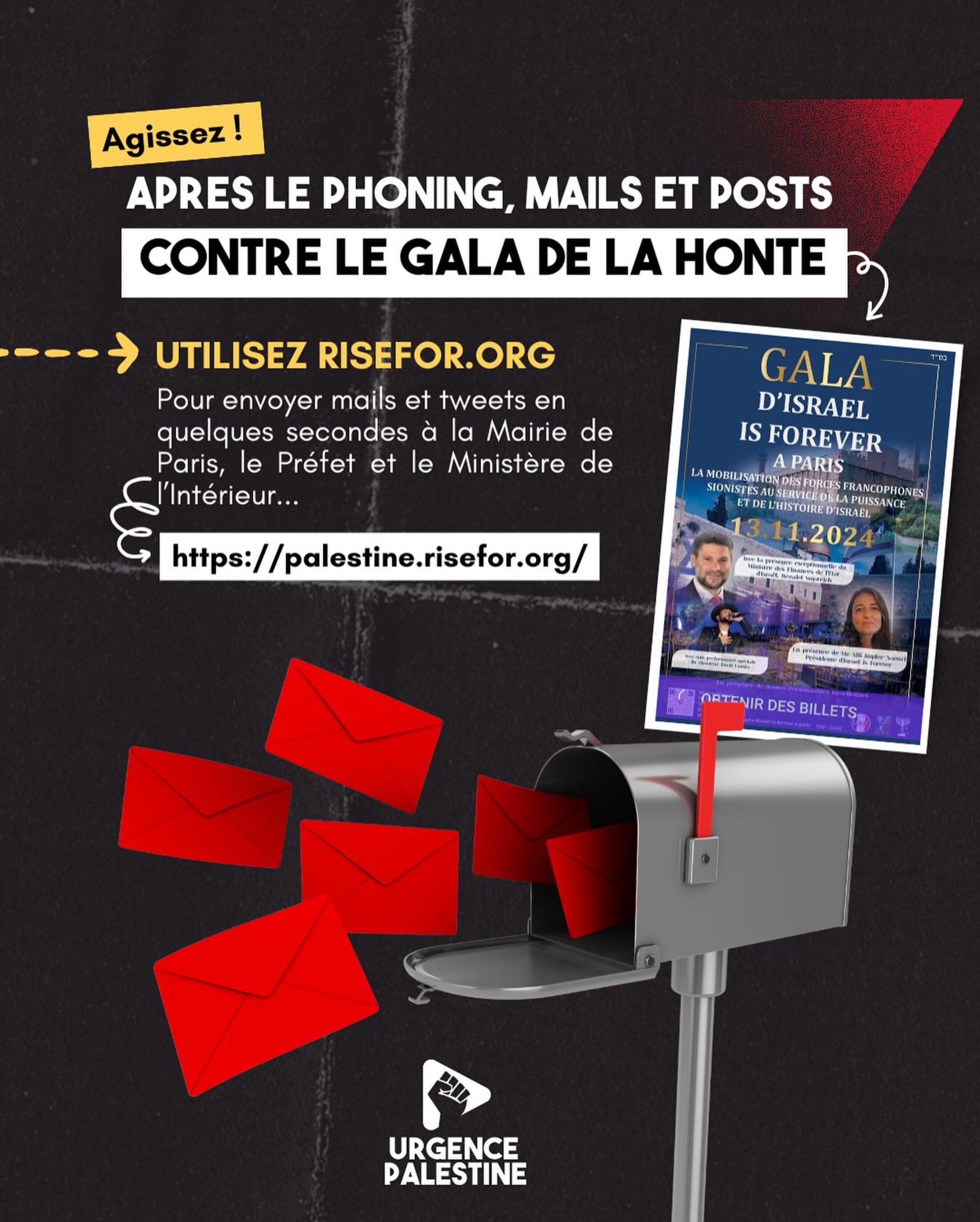 Dans le même temps, Urgence Palestine lance, depuis ses réseaux sociaux, un appel à se mobiliser via du phoning et du mailing.