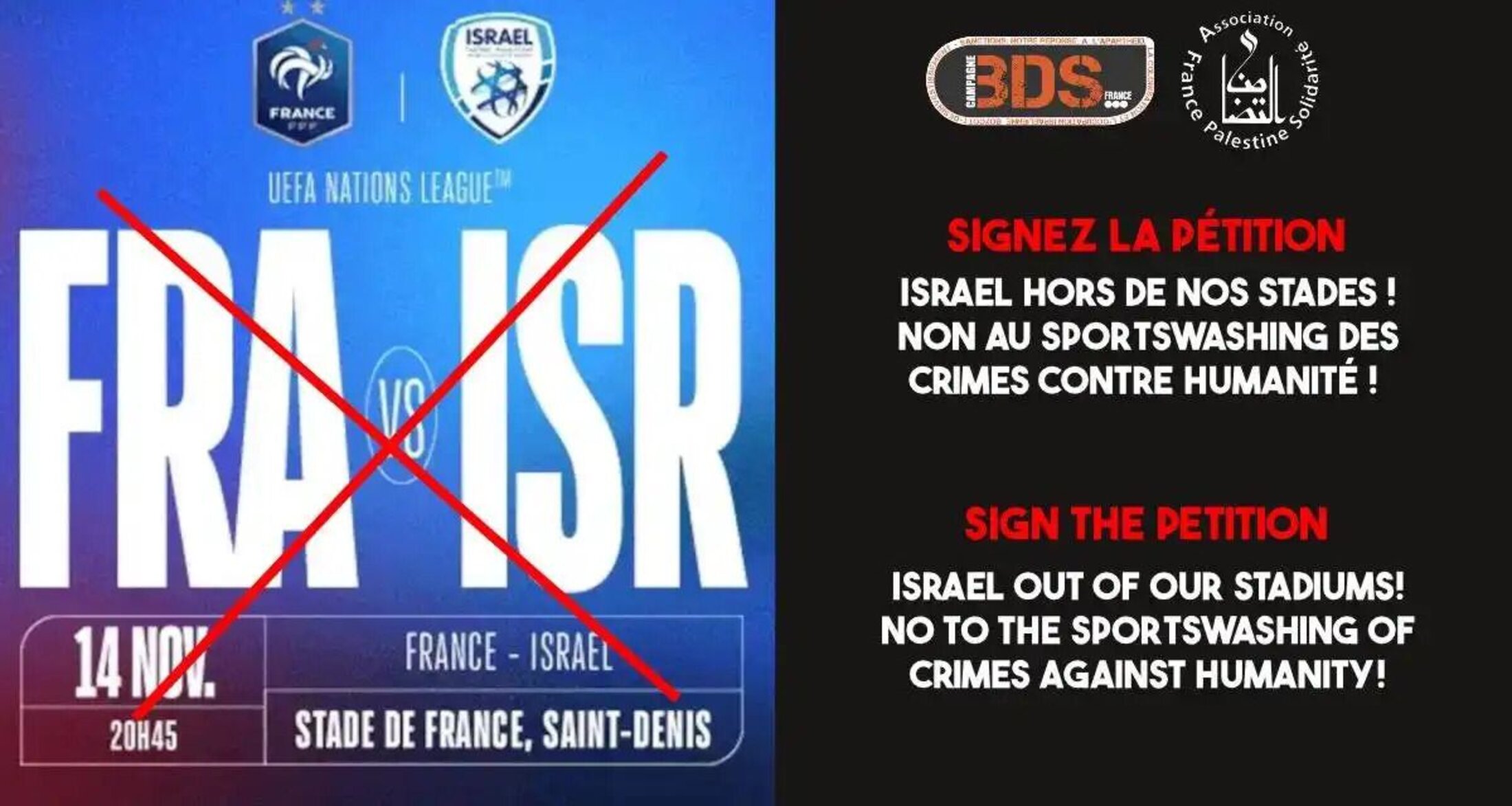 Par ailleurs, un match France-Israêl est prévu le lendemain, 14 novembre, au Stade de France. Il avait fait l'objet d'un appel au boycott de la part de BDS France dès le 30 otobre 2024, avec une pétition demandant l'annulation du match.