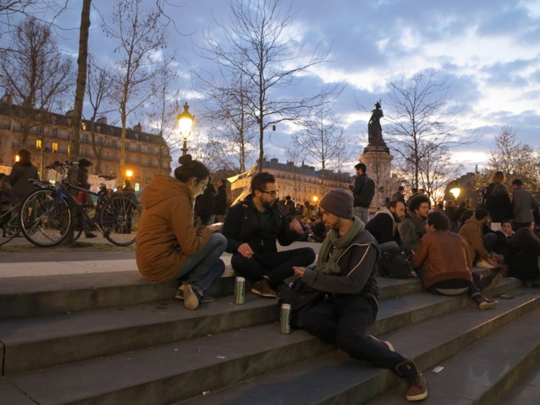 Place de la République à Paris. Qui sont ces gens qui, la nuit, restent éveillés? Des farfelus? Des insomniaques? Des rêveurs en lutte? Des curieux? Photoreportage d'un mouvement qui percute!