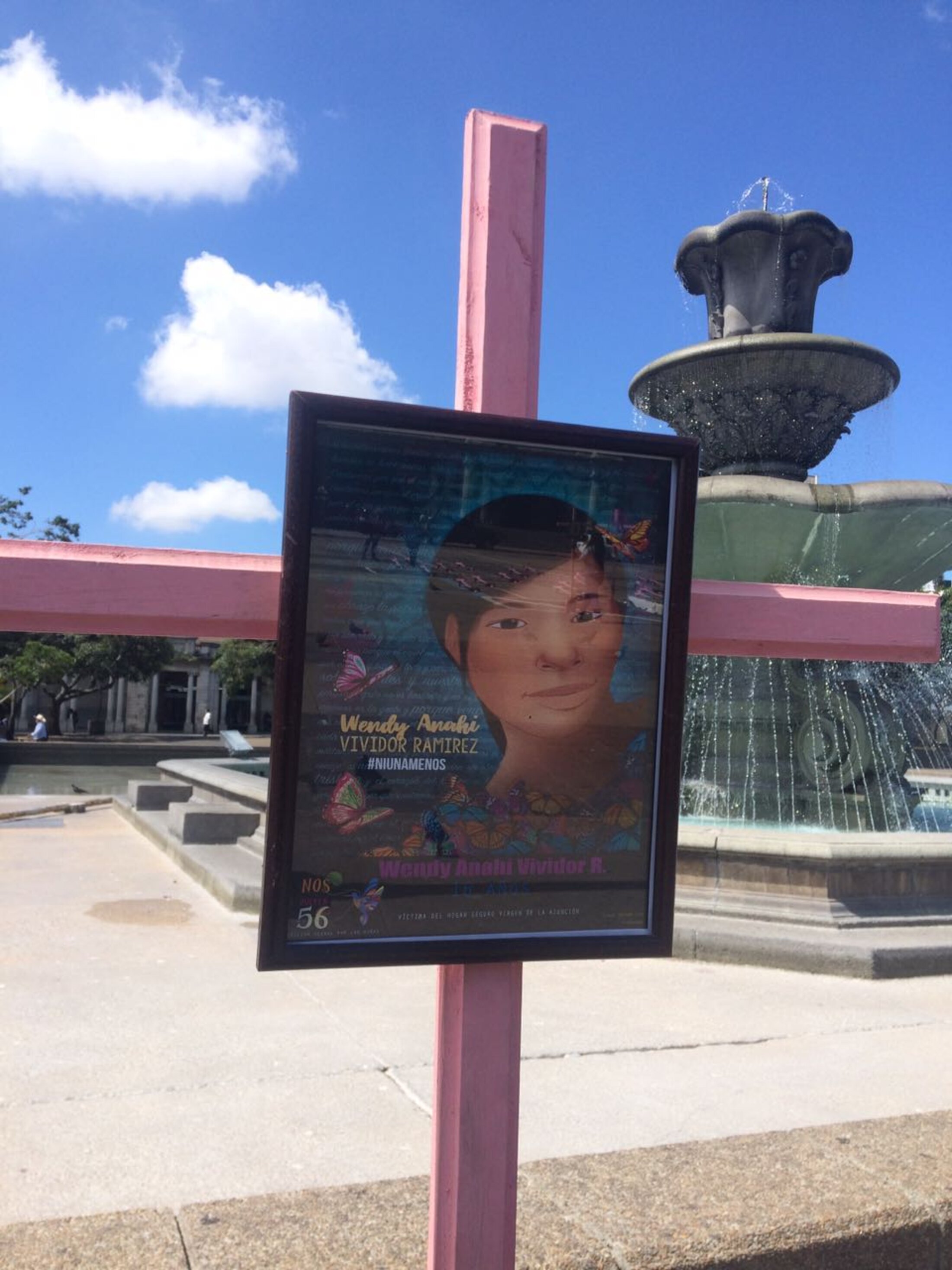 En soutien au combat pour la dignité et la justice des familles des 56 victimes de l'incendie du foyer Virgen de la Asuncion, l'appel a débouché sur un rassemblement marquant le sixième mois écoulé depuis le crime d'Etat commis le 8 mars 2017. Les portraits illustrés des 56 élaborés au cours des derniers mois ont été exposés publiquement devant le Palais national guatémaltèque. Au pied d'un gigantesque drapeau national, 56 croix ont été disposées. Poursuivre le deuil pour lutter contre l'oubli.