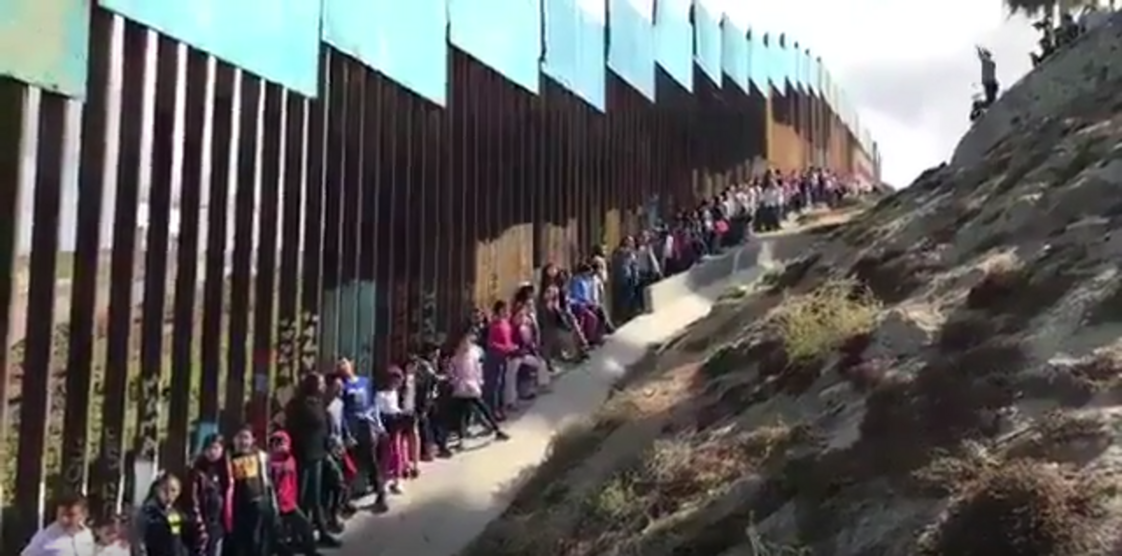 Collés au mur frontalier du côté US, des enfants chantent pour le Mexique sinistré