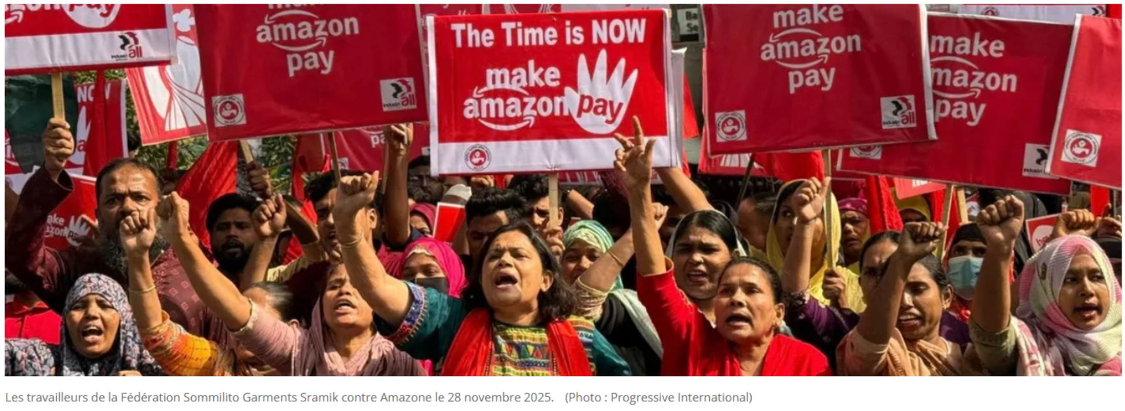 De l’Allemagne au Bangladesh, des milliers de salariés d’Amazon ont fait grève lors du Black Friday pour protester contre leurs conditions de travail. Source : Common dreams