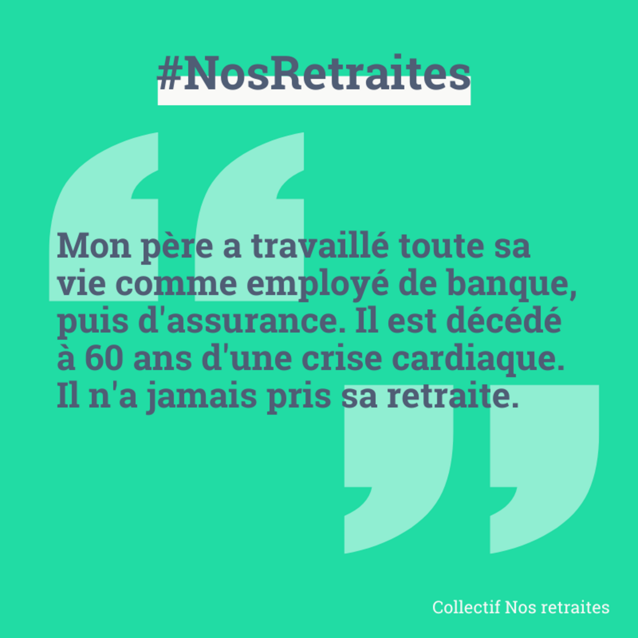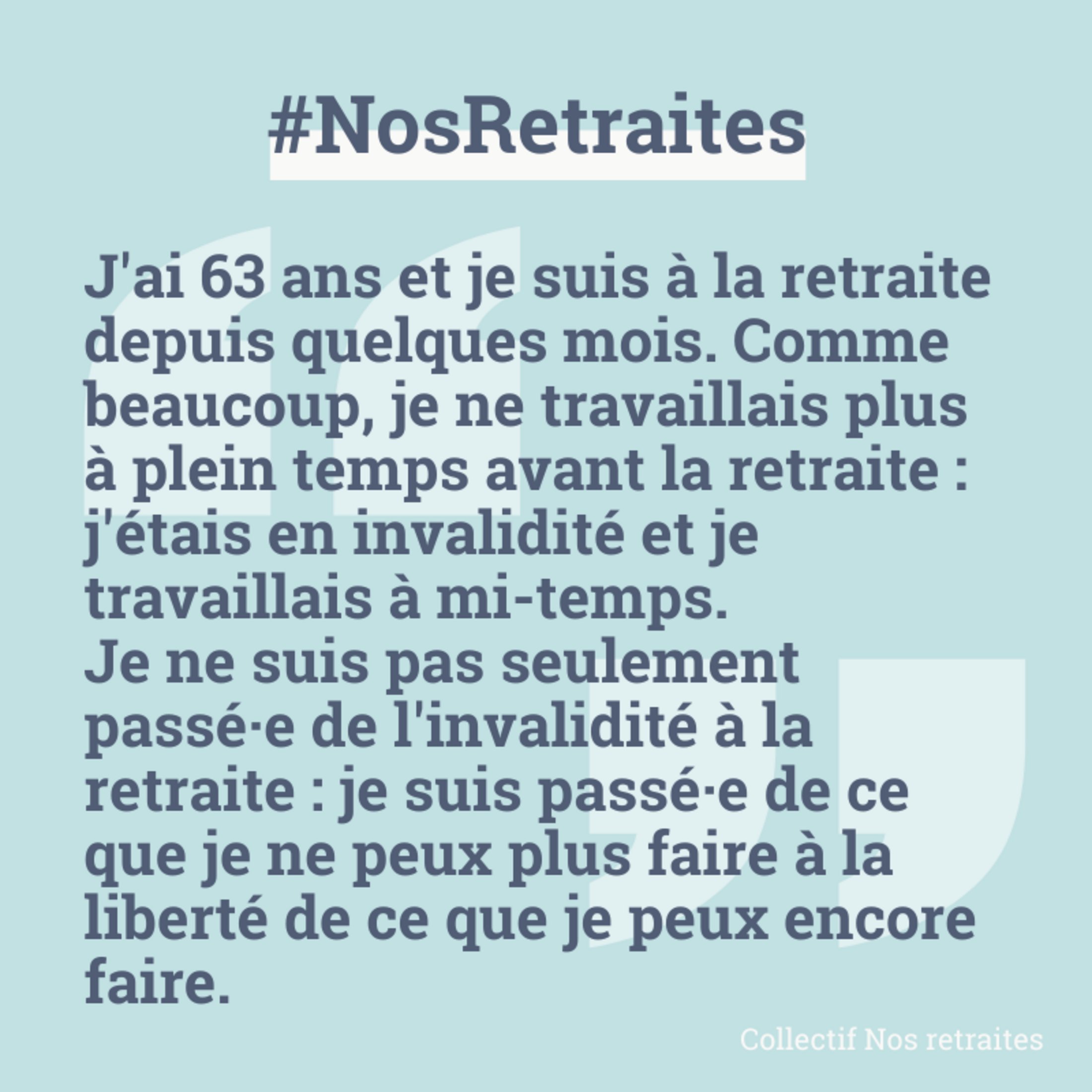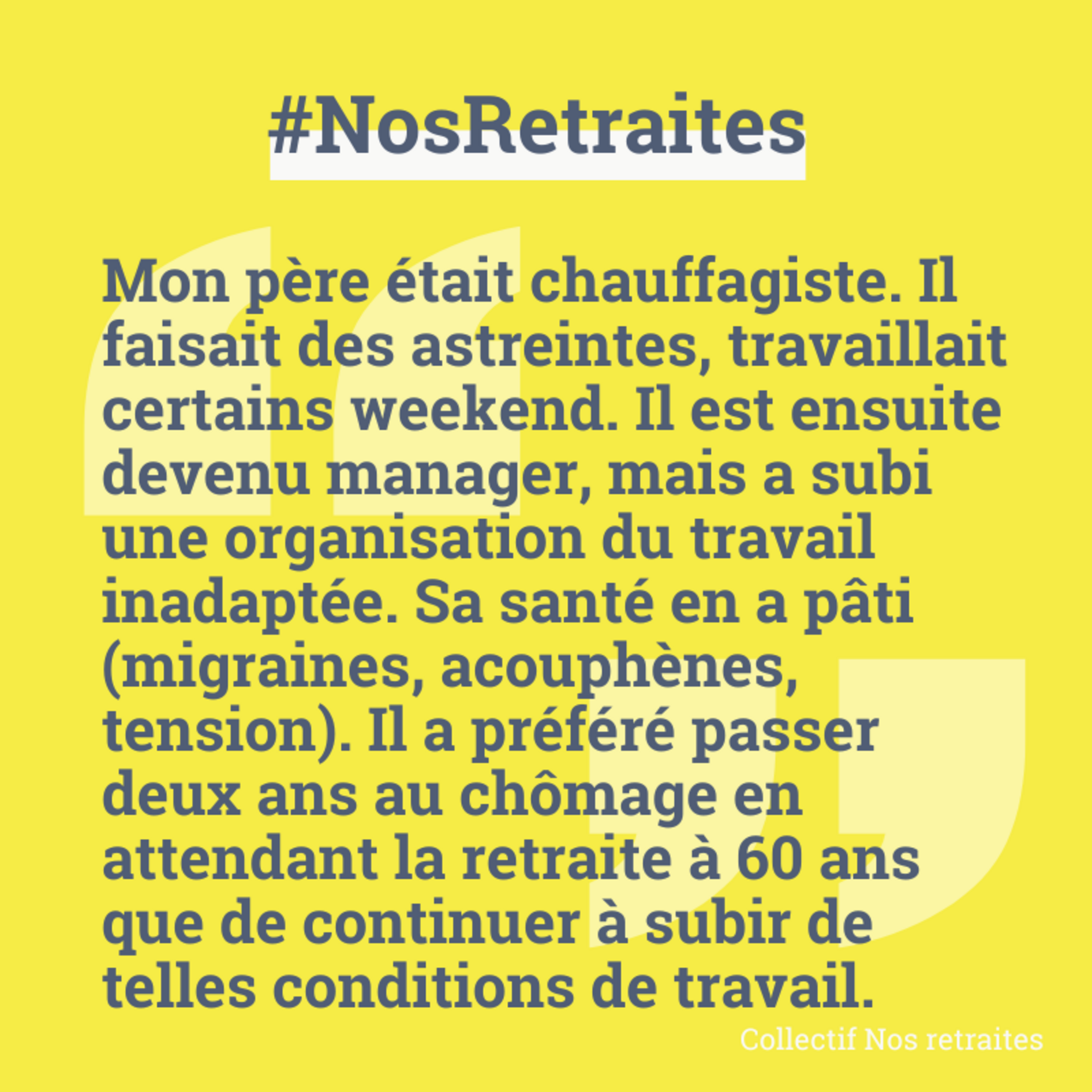 Beaucoup nous ont écrit pour nous raconter. Ce collègue décédé à 6 mois de la retraite. Cette grand-mère qui a pu s’occuper des petits-enfants dans sa soixantaine pendant que les parents travaillaient dur. Cette association du samedi, tenue à bout de bras par des retraité·e·s. Nous avons décidé de relayer ces témoignages, parce qu’au-delà des chiffres (que nous tentons aussi de vulgariser par ailleurs), la retraite c’est avant tout un choix de société.
