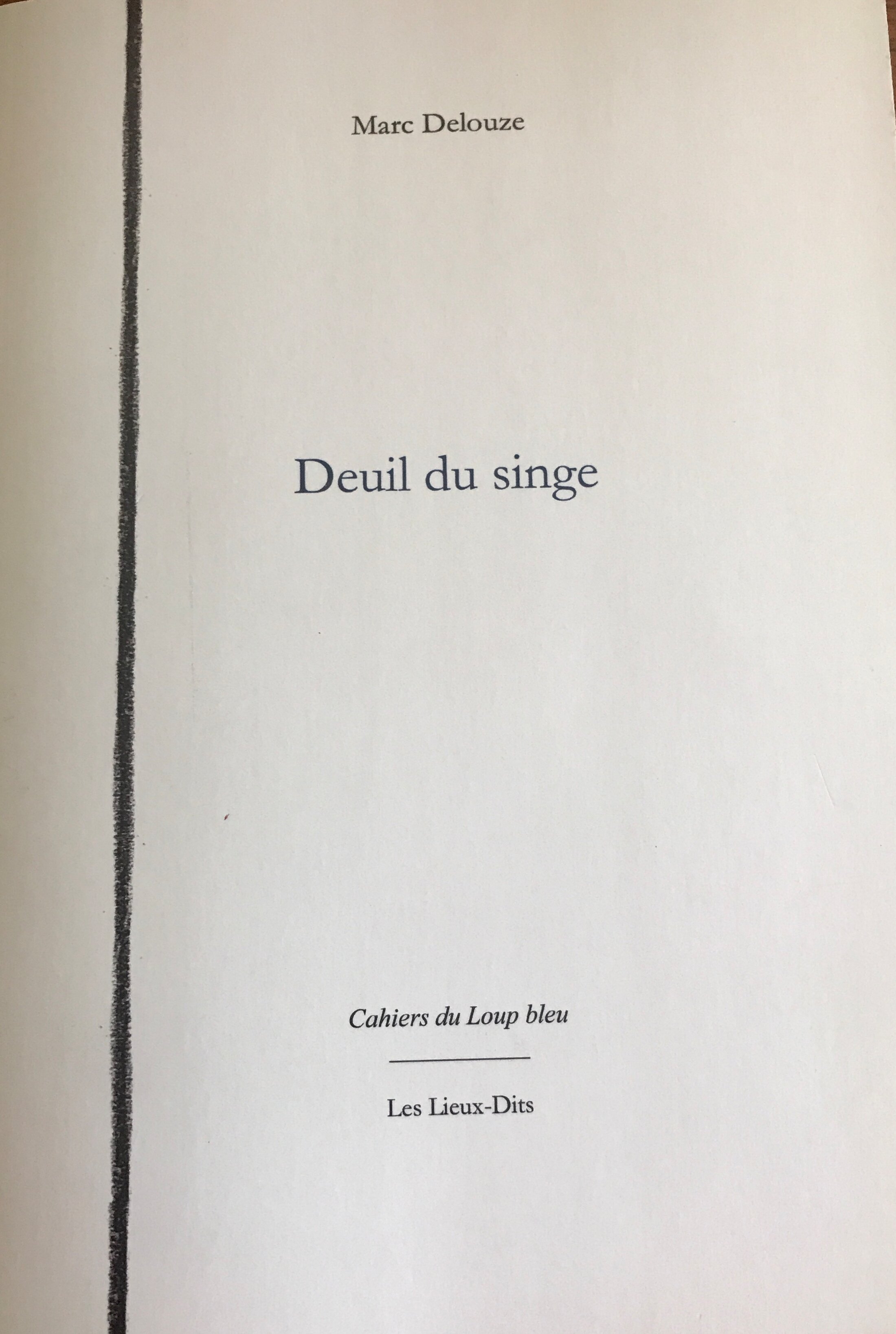 [1]Marc Delouze – « Deuil du singe » – Cahiers du Loup bleu – Editions Les Lieux-Dits – 41 pages