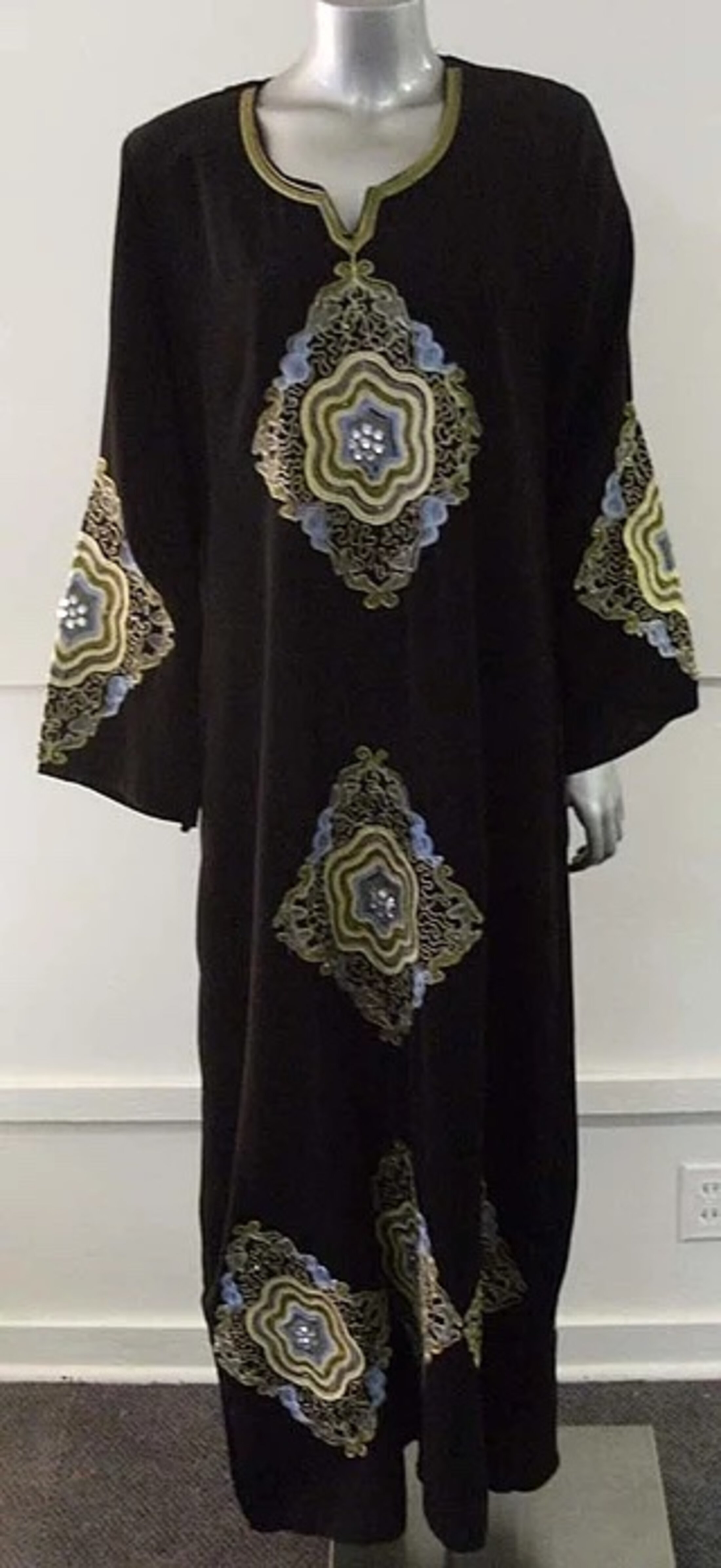 L’abaya est cette toge ample et légère qui se porte des épaules jusqu’aux pieds. Le visage reste découvert (voir aussi la photo ci-dessous).