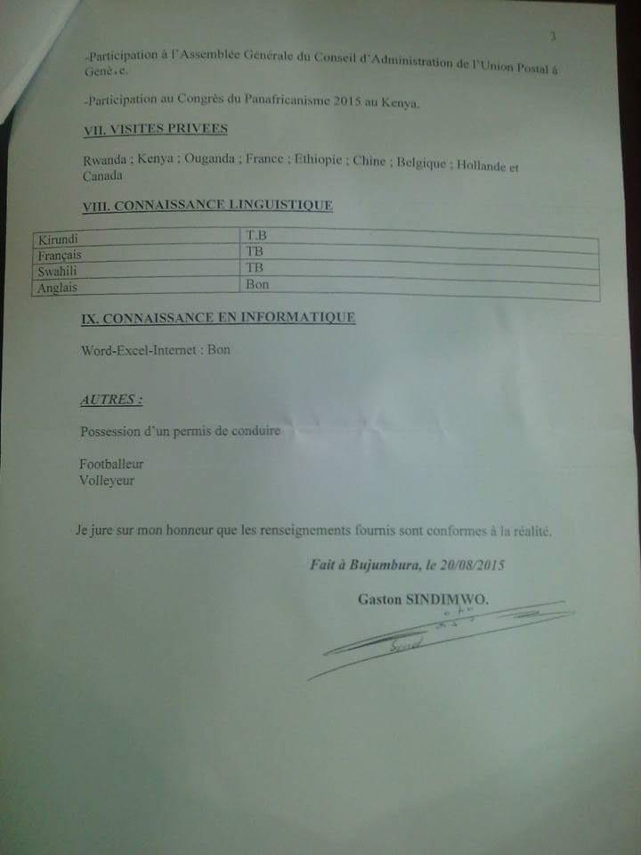Celui-ci, par exemple, signé par Emile Mworoha, aujourd'hui historien de renom, alors Secrétaire Général de la JRR (Jeunesse Révolutionnaire Rwagasore, qui avait joué un rôle non négligeable lors de l'indépendance). Celle-ci était accusée de participer activement aux massacres en 1972. Cette lettre, envoyée à qui de droit, dénonce ces accusations comme non fondées, d'une part, et d'autre part comme significatives d'une instrumentalisation des JRR par le pouvoir. Un tweet s'interroge : pourquoi pas une lettre de même nature de la part des Imbonerakure ?