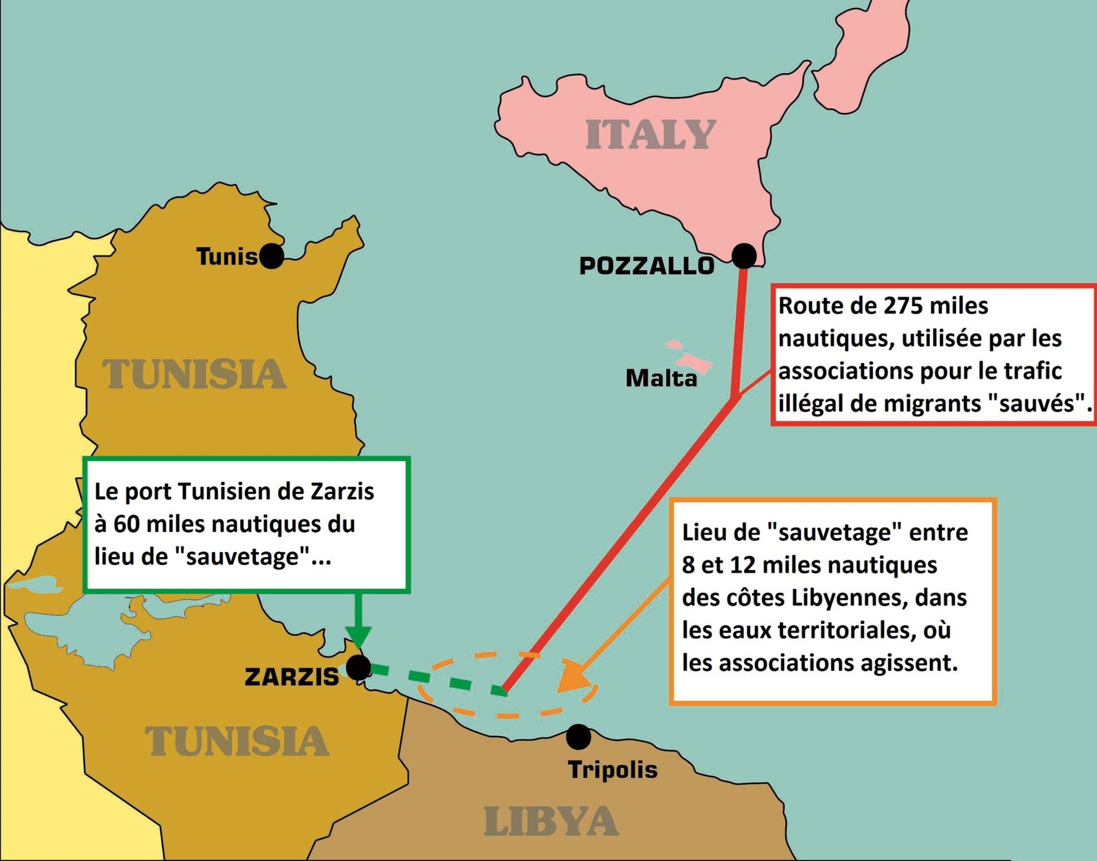 Normalement, les "sauveteurs" devraient les déposer au port le plus proche, et il y en a un en Tunisie à 60 miles environ.