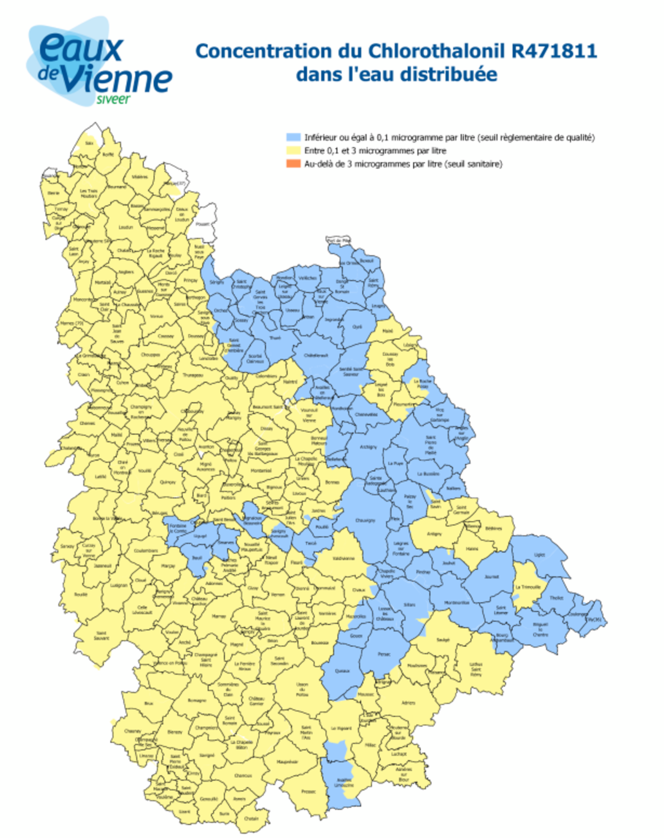 Autre élément déclencheur, ce fameux courrier des Eaux de la Vienne de juin 2023 indiquant la forte présence dans l’eau du robinet d’un métabolite de pesticide longtemps utilisé en agriculture, le chlorothalonil. Un courrier où on nous disait « que l’eau était consommable mais plus vraiment potable », comme le précise la militante au micro.