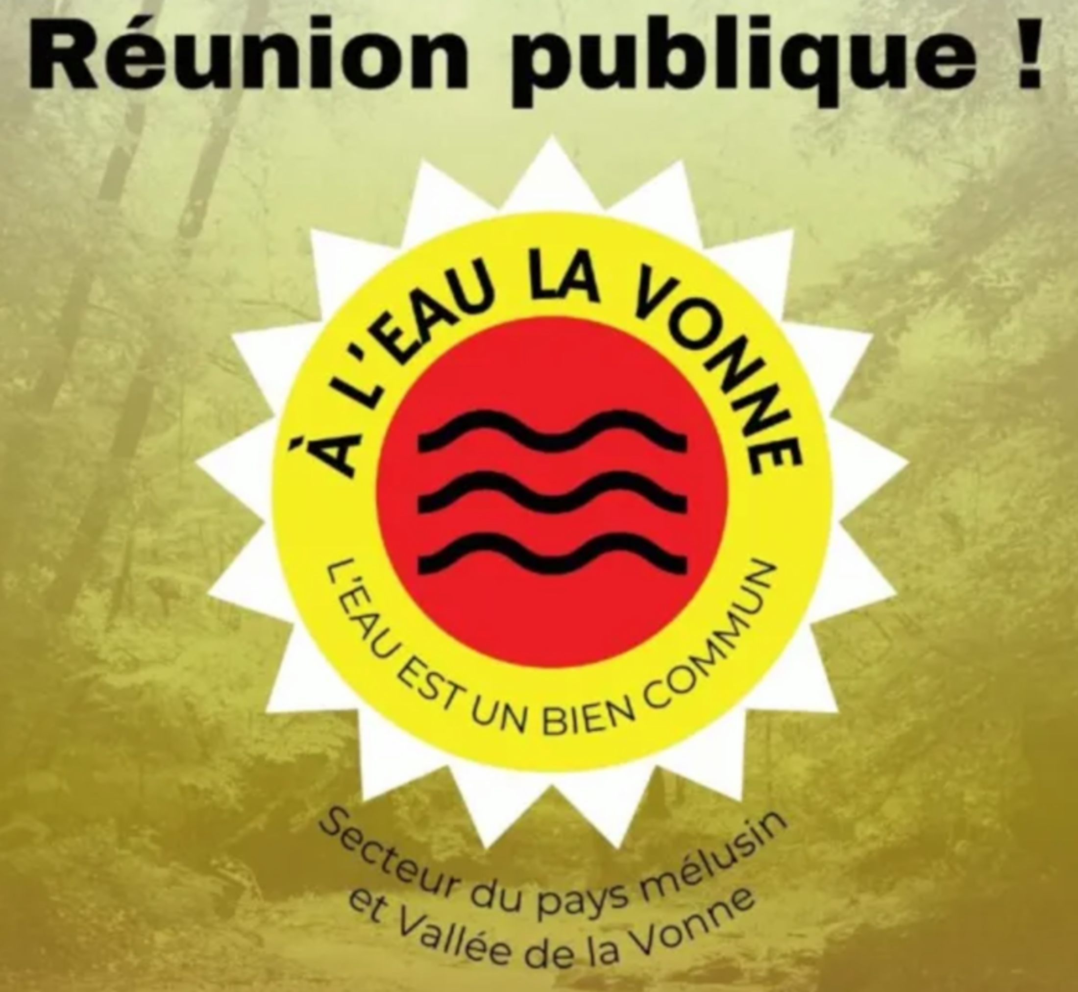 La réunion publique démarre assez tard et une militante de À l’Eau la Vonne commence par présenter brièvement le collectif. Sainte-Soline et son déluge de grenades ayant bien sûr été un élément important et déclencheur. Mais elle explique que c’est à l’occasion du Convoi de l’eau de juillet 2023 et du projet de la bassine de Saint-Sauvant qu’a émergé l’idée de s’organiser sur un petit territoire, à l’échelle d’une rivière : La Vonne.