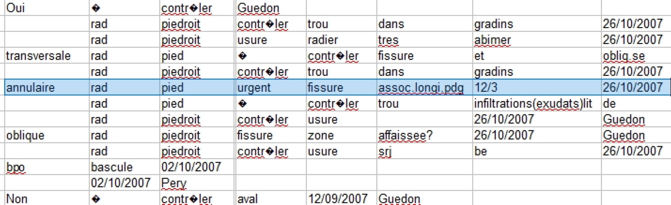 Certe on pourrait se réjouir des nouveaux équipements dont se sont dotés les services d'assainissement franciliens, comme le fameux bassin d'Austerlitz. Mais là encore, une question se pose : si les ouvrages déjà existants ne sont pas curés correctement et réparés régulièrement, à quoi bon agrandir le réseau ? Quid de l'entretien de ces structures une fois les JO passés ? À titre d'exemple, sur les égouts parisiens, nos données font état de 57600 dégradations diverses en égout, allant du simple enduit décollé à contrôler à des fissures annulaires importantes (comprendre s'étendant du radier à la voûte, en passant par les piédroits). L'un des records étant une fissure annulaire signalée à traiter en urgence par les égoutiers, toujours présente à l'heure actuelle. Signalée à l'origine en 2007. Nos archives pour illustration :