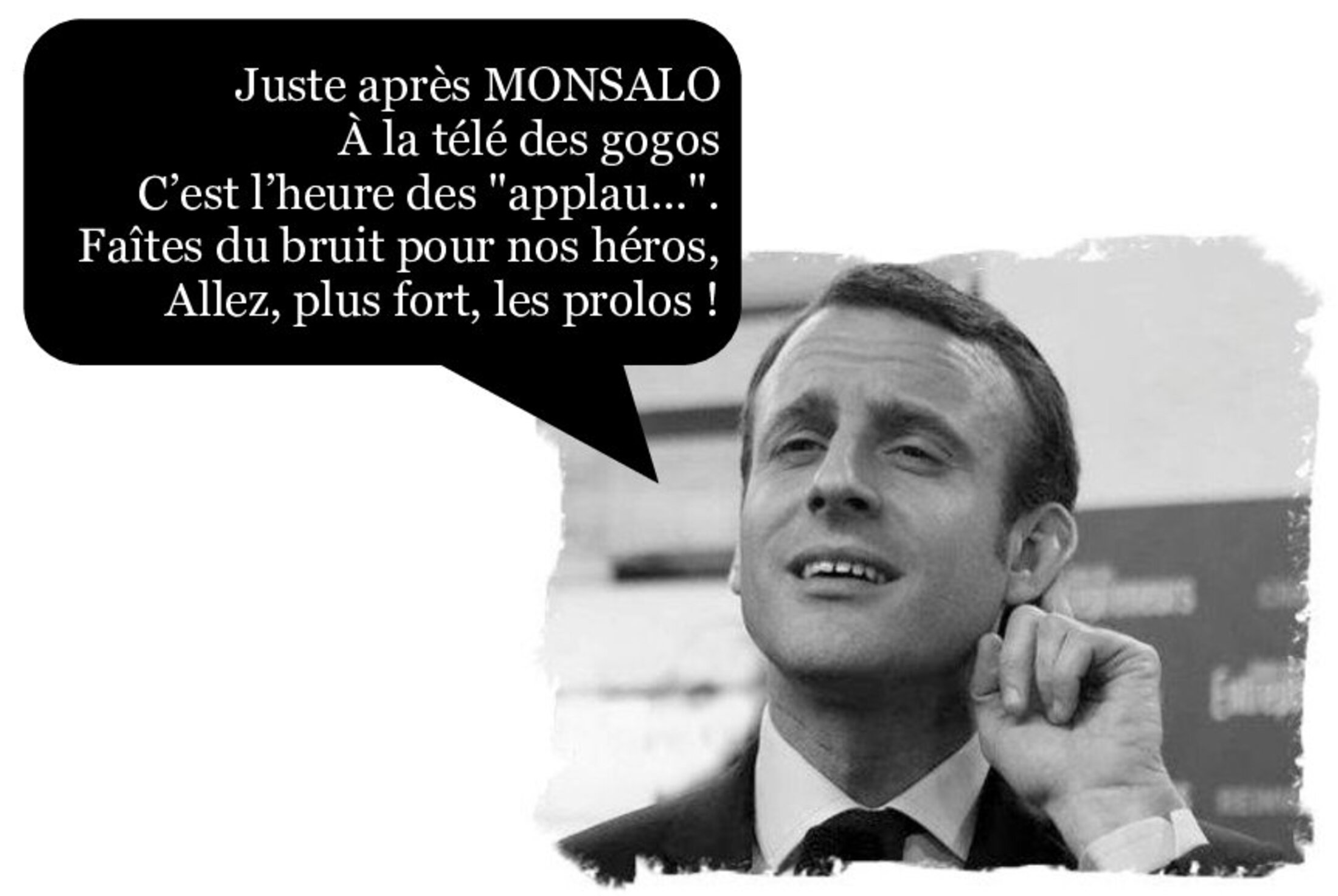 Notre pays est donc en guerre, c’est MANU 1er qui l’a dit. Et pour celle-ci comme dans toutes les autres, il faut des héros. L’Histoire, celle des livres d’écoles ou d’universités, celle qui reste comme un précieux savoir à transmettre, aurait pu choisir, osons l’imaginer, de glorifier l’ensemble de nos dirigeants politiques et scientifiques, du roi magnifié dans sa sublimité au plus playmobilisé des députés de la majorité en passant par le plus médiatisé des médecins-spécialistes, ceux-là-mêmes qui œuvrent sans relâche pour endiguer ce péril jaune qui vient jusque dans nos bras contaminer nos fils et nos compagnes, alors aux armes etc … Mais l’Histoire a parfois ses humeurs et aime à brouiller les cartes, fussent-elles d’état-major. Ainsi, ce sont les soignants qui se voient portés aux nues par presque tout un peuple se pressant chaque soir sur les balcons, ou aux fenêtres pour les moins bien lotis, pour applaudir ces femmes et ces hommes en blanc qui ne font pourtant que leur métier, certes beaucoup plus intensément, certes beaucoup plus dangereusement, mais qui auraient surtout apprécié, venant du troupeau national, les mêmes encouragements lorsqu’ils alertaient, pétitionnaient, manifestaient contre le manque de personnel, contre le manque de matériel, contre les suppressions des services d’urgence de proximité, contre les suppressions de lits, pour que les hôpitaux publics ne soient plus considérés comme des entreprises à faire du fric. Après tout juste un an d’intense mobilisation de ces soignants qui sont aujourd’hui au boulot et qui vont payer cher la destruction méthodique de leur outil de travail organisée par tous les gouvernements successifs depuis tant d’années, tâche homicide dans laquelle MANU 1er fait largement sa part, l’amertume ébrèche la satisfaction lorsque, chaque soir, à vingt heures pétantes, quelques minutes après le macabre décompte télévisé et présenté par Jérôme MONSALO, on voit sur nos écrans M. et Mme FRANCHOUILLARD applaudir à tout rompre pendant deux bonnes minutes. Certains, probablement victimes du syndrome des stades, plus couramment reconnu comme étant celui du supporter-bas-du-front », ajoute la voix à la gestuelle et hurlent des "Bravo", des "Hourra" et des "Merci" à s’époumoner. Il en est même qui s’équipent d’ustensiles de cuisine et tapent, tapent et tapent encore, le but étant bien sûr de faire le plus de vacarme possible, comme pour tenter de prouver que les soignants, eh ben nous, on les aime plus que les voisins !