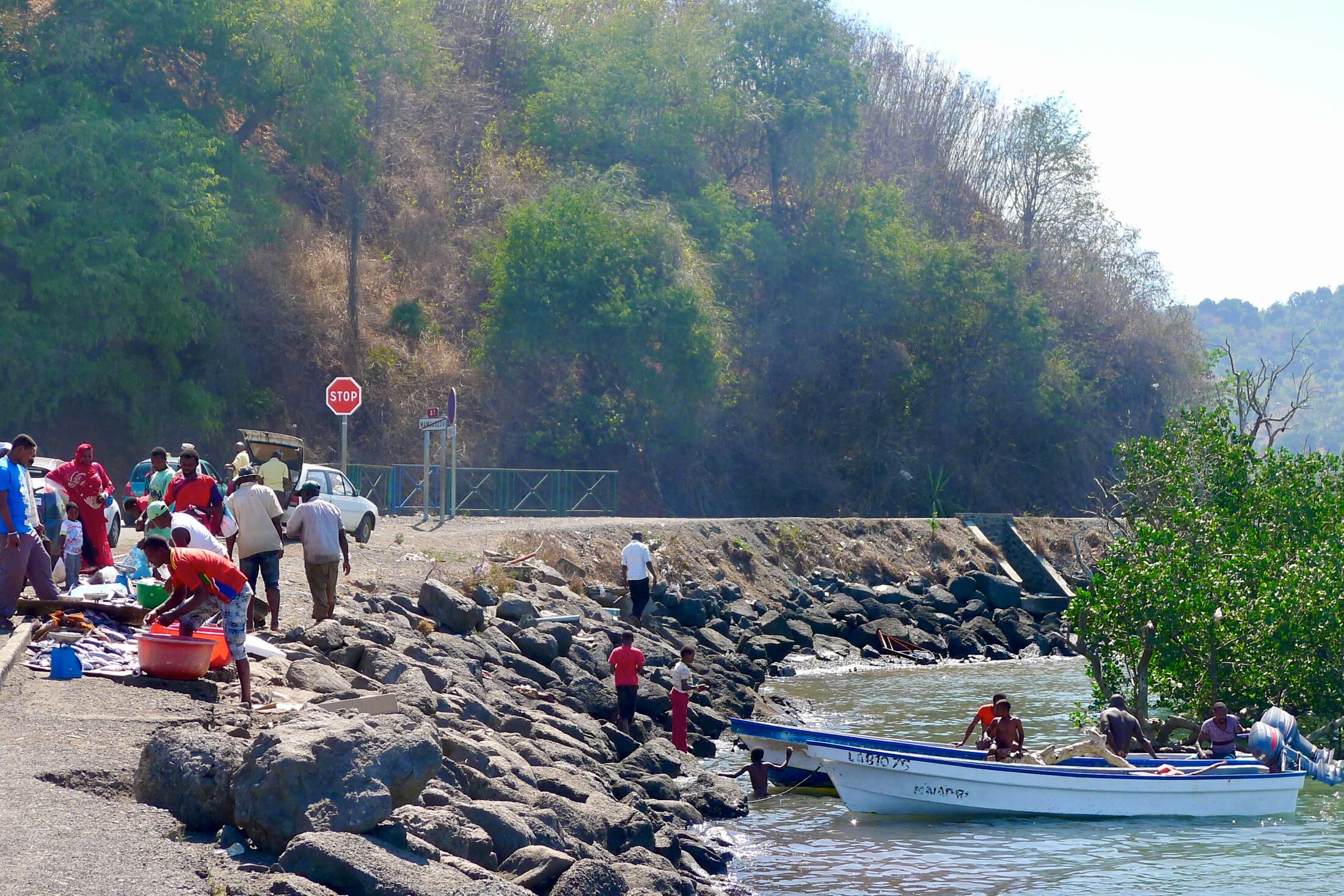 « En fait ici au village, il y a une trentaine de bateaux qui pêchaient. Ici on pratique la pêche vivrière, c’est familial. C’est pour la famille. Actuellement il n’y a que deux bateaux qui sortent, qui ont le permis de pêche. Les autres bateaux ne peuvent pas sortir. Il y a pénurie de poissons. Nous on ne mange pas des mabawa [ailes de poulets, vendues conditionnées par paquet congelé de 10 kg au prix d'environ 30 €], des produits surgelés ! On ne mangeait que du poisson local. C’était bien pour nous parce que c’est un produit naturel. Et maintenant on est obligé de manger du mabawa, et le mabawa ça se trouve pas au bord de la route, il faut l’acheter alors qu’on n’a rien. On est obligé d’acheter tout. Avant on ramenait du poisson, on vendait la moitié pour avoir de l’argent pour les achats, pour payer le loyer et l’électricité. Maintenant on n’a rien, on doit acheter le mabawa, payer les loyers, l’électricité, tout et on a rien du tout.