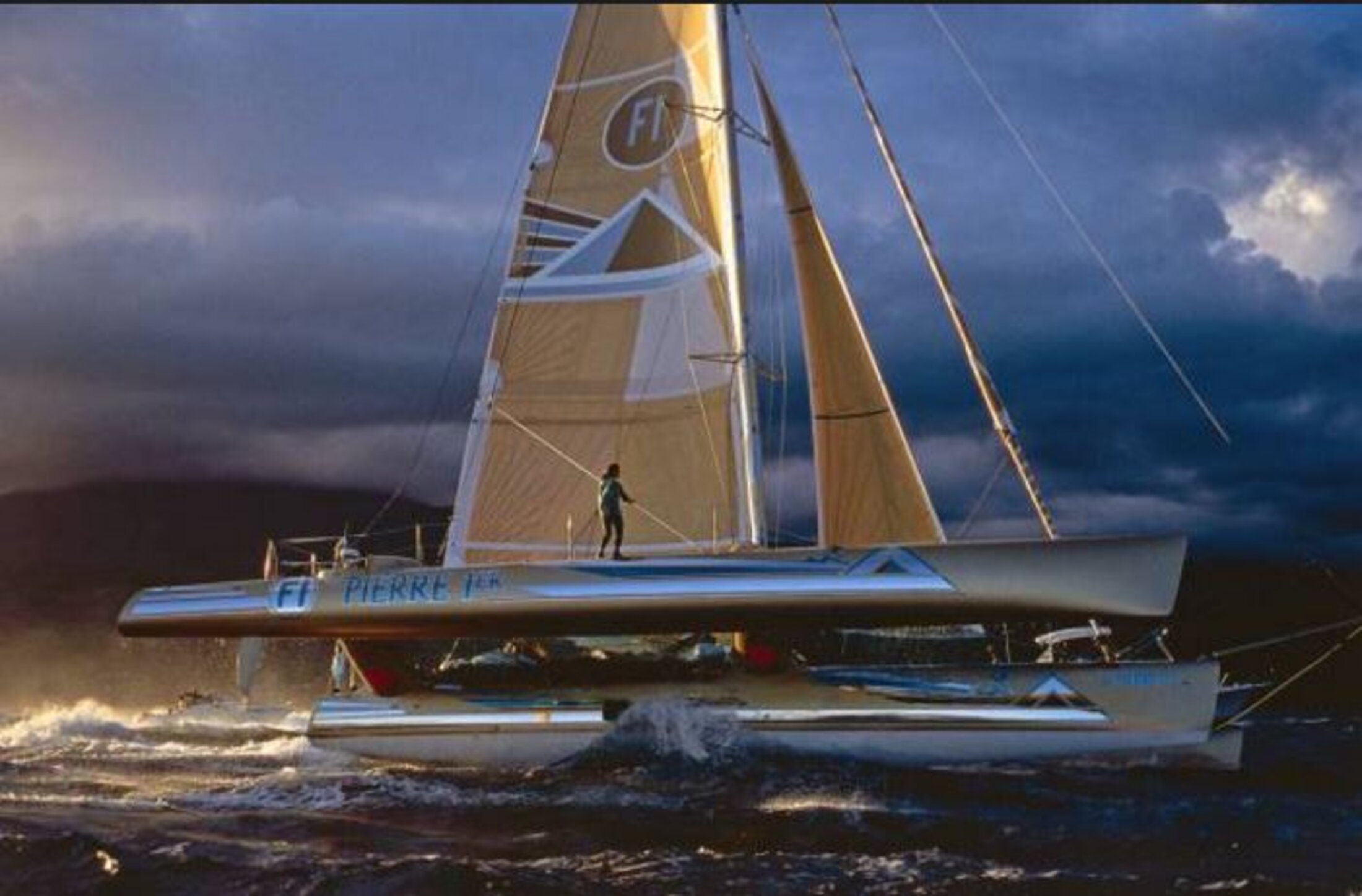Ici à bord de Pierre 1er un trimaran de 18 m équipé d'un mat de 27 m de haut.