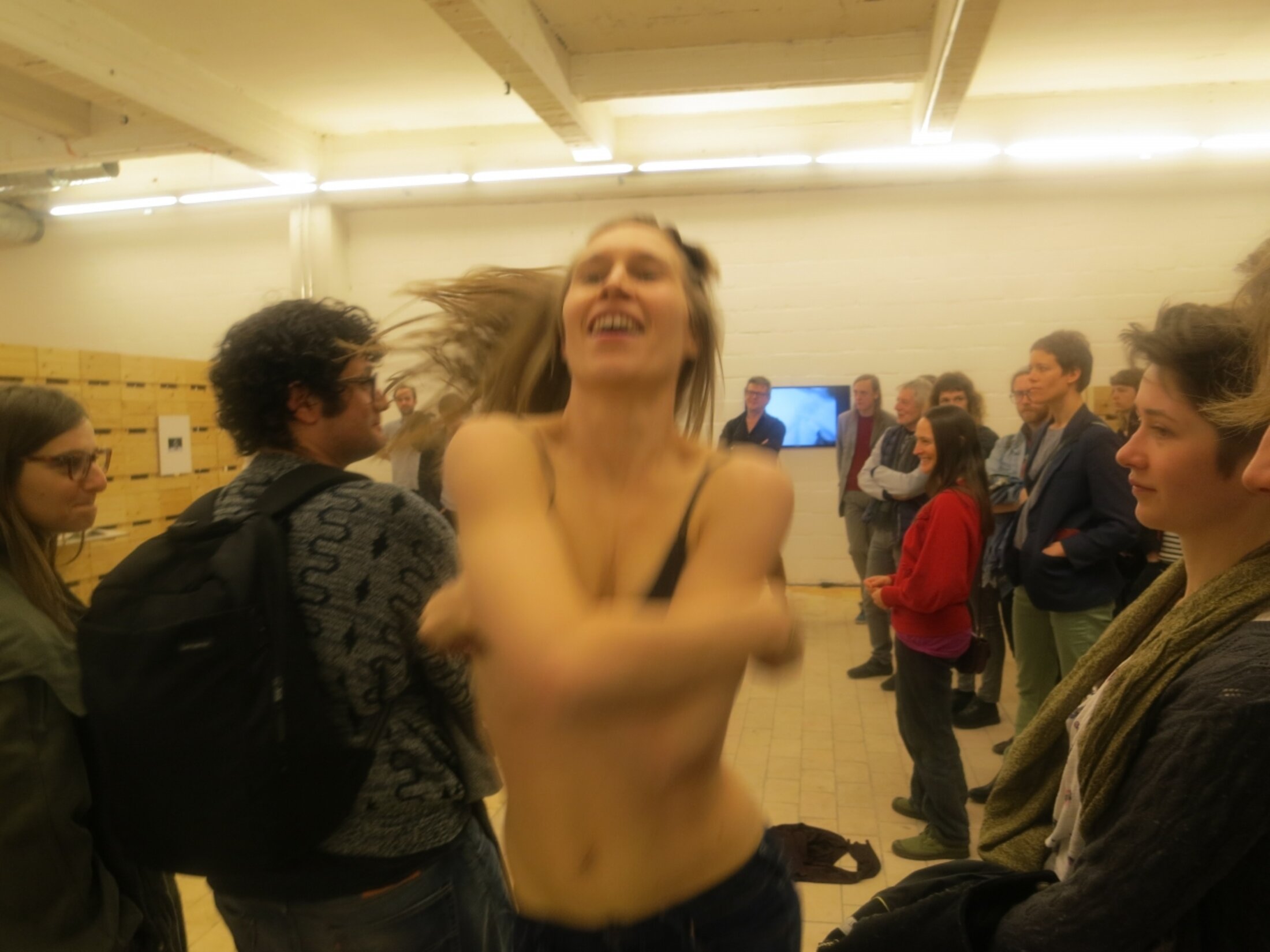 On nomme Vito Acconci. Et Carolee Schneeman* qui se pose en artiste solaire à la fin des années 60, rayonnante de sexualité. Elle s’expose et elle le fait nue. Mette Ingvartsen s'empare d'une pièce emblématique de Schneeman et l’insère dans une salle, un espace propice à l'activation. Elle s'implique, elle choisit, elle commente, elle interagit avec le visiteur, elle le dirige. Elle transmet, elle reflète, elle oppose. Elle s’arrête sur la part objective de la norme, elle partage des considérations relevant de l’intime, elle donne au spectateur (qui a un son billet de spectacle en poche) la possibilité d'être confronté-e à ses représentations. Il s'agit de décrire, de commenter, de performer, fragmenter, de dilater, de citer, de gémir. C'est la traversée d’une histoire qui porte vers une oeuvre, celle que la chorégraphe poursuit et dirige, dans l’instant. L’air est tiède, un peu humide, l’investissement physique direct délivre une histoire et produit un présent.