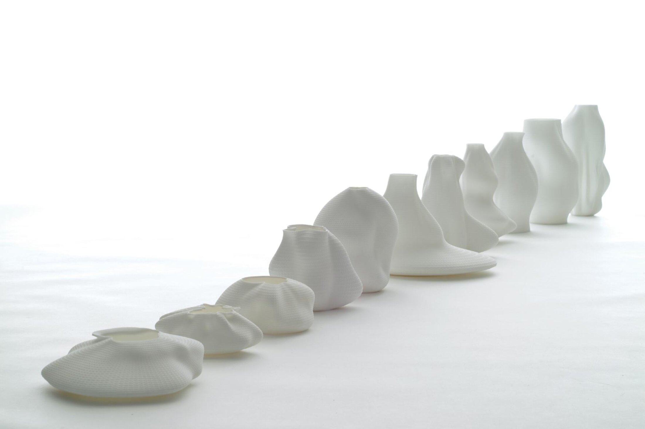 Vase #44, 11 vases 3D imprimés sur table © François Brument, 2008
