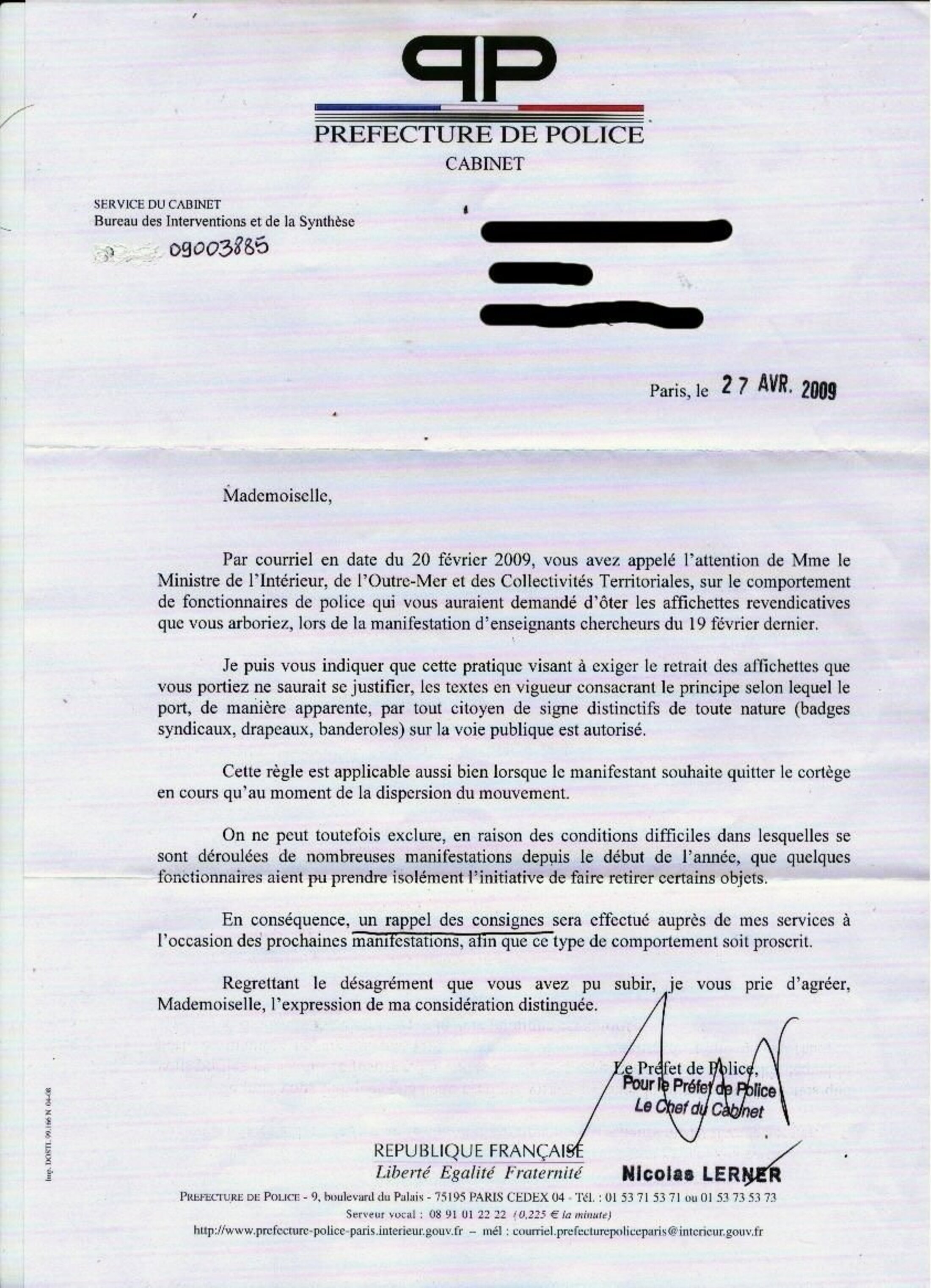 Casseurs de grèves, petit rappel de consigne du cabinet de la Préfecture de Police de Paris.