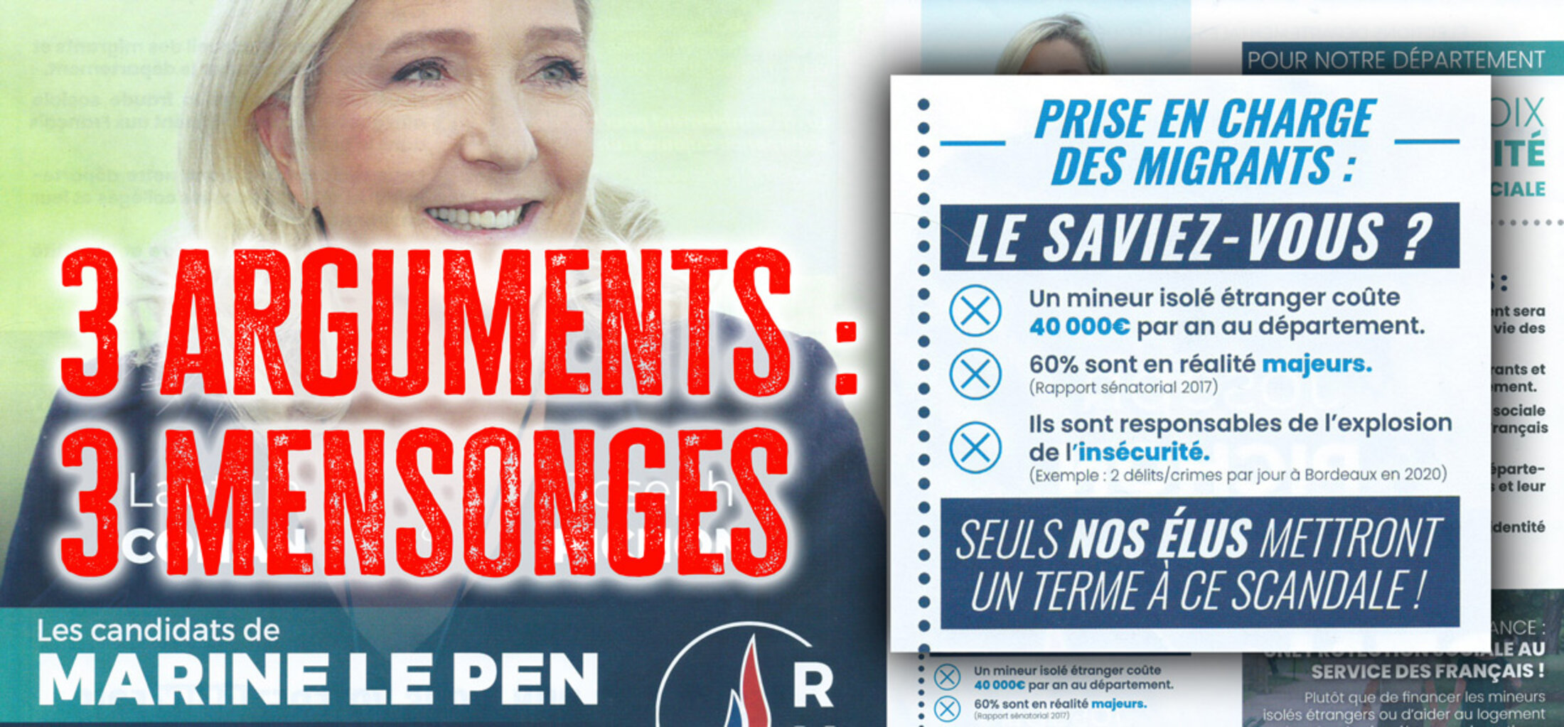 Quand le RN annonce vouloir refuser l'accueil des migrants et leur pris en charge dans le département, il annonce donc clairement refuser de protéger des centaines de mineurs et les laisser à la rue... en s'appuyant sur des chiffres faux pour le justifier.