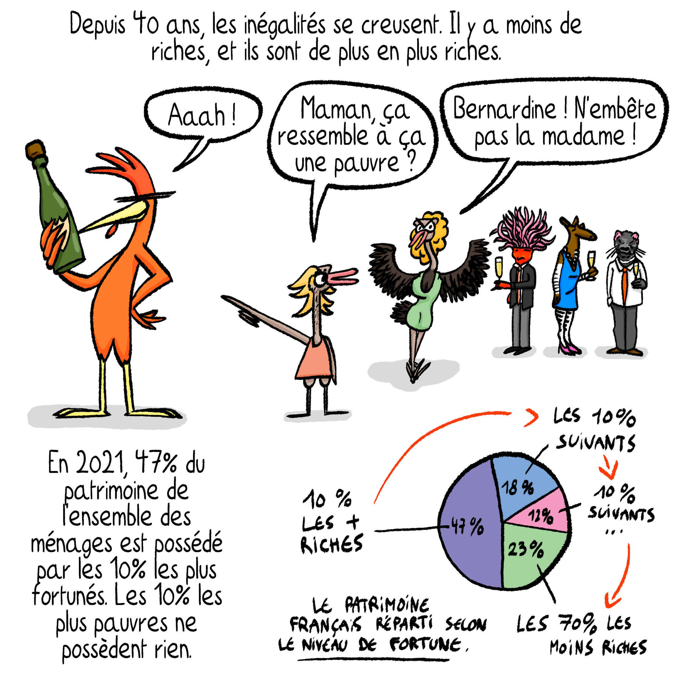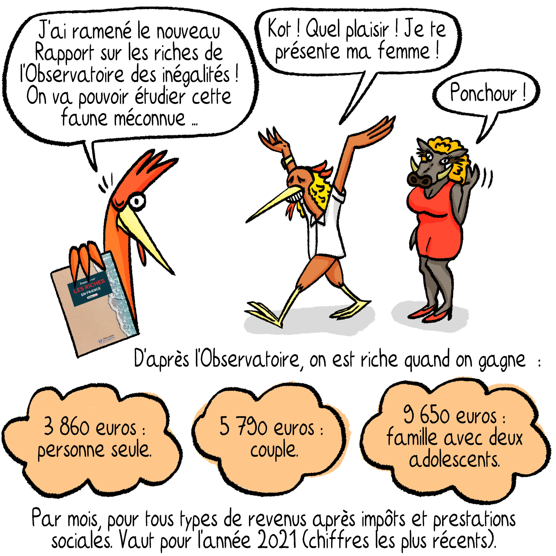 Il n’est pas question d’ultra-riches ici. Ils constituent une part infime de la population, leur richesse se situe sur une autre échelle. Les chiffres s’arrêtent en 2021, car l’INSEE (Institut national de la statistique et des études économiques), principale source du rapport, n’a pas encore publié de chiffres plus récents.