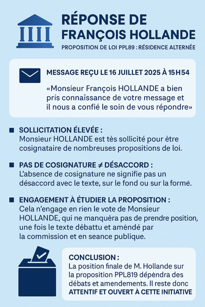 Ces opportunités permettent de maintenir la pression démocratique, d’expliquer les enjeux concrets de la réforme et de rappeler l’attente forte de nombreuses familles concernées par les décisions judiciaires en matière de résidence des enfants.