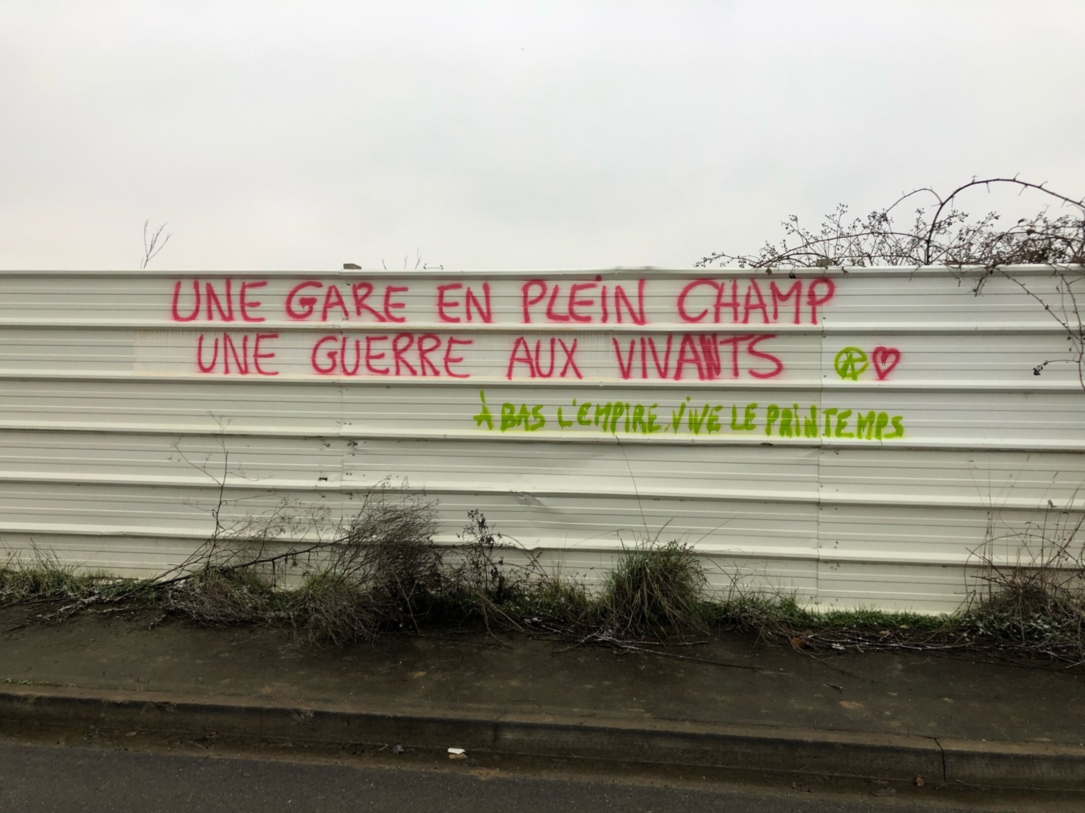 10 ans que ça lutte à Gonesse contre le projet Europacity, un immense et fantasque centre commercial, sur des terres agricoles. Suite à cette longue lutte, ce délire mégalo a été annulé fin 2019. Pourtant en 2021, le projet de gare du métro Grand Paris Express lié à Europacity est quant à lui toujours en vigueur. C'est que dans cette zone de 800 ha des terres des plus fertiles de France, entre deux aéroports, interdite à la construction de logement, l'Etat espère toujours urbaniser 110 ha autour de la gare, mais aucun projet n'est proposé autour de la gare.