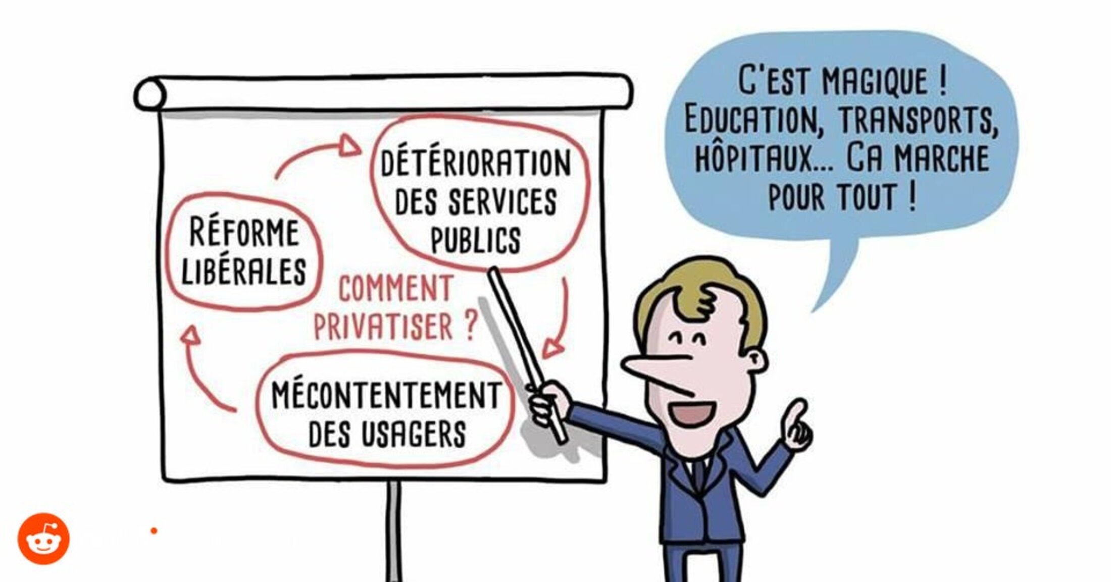 (1) Pays soumis au même détricotage de l'école publique. On enlève progressivement des moyens, provoquant la fuite des gens aisés vers le privé et l'aggravation des dysfonctionnements, dysfonctionnements qui appellent une nouvelle saignée et on est reparti pour un tour.