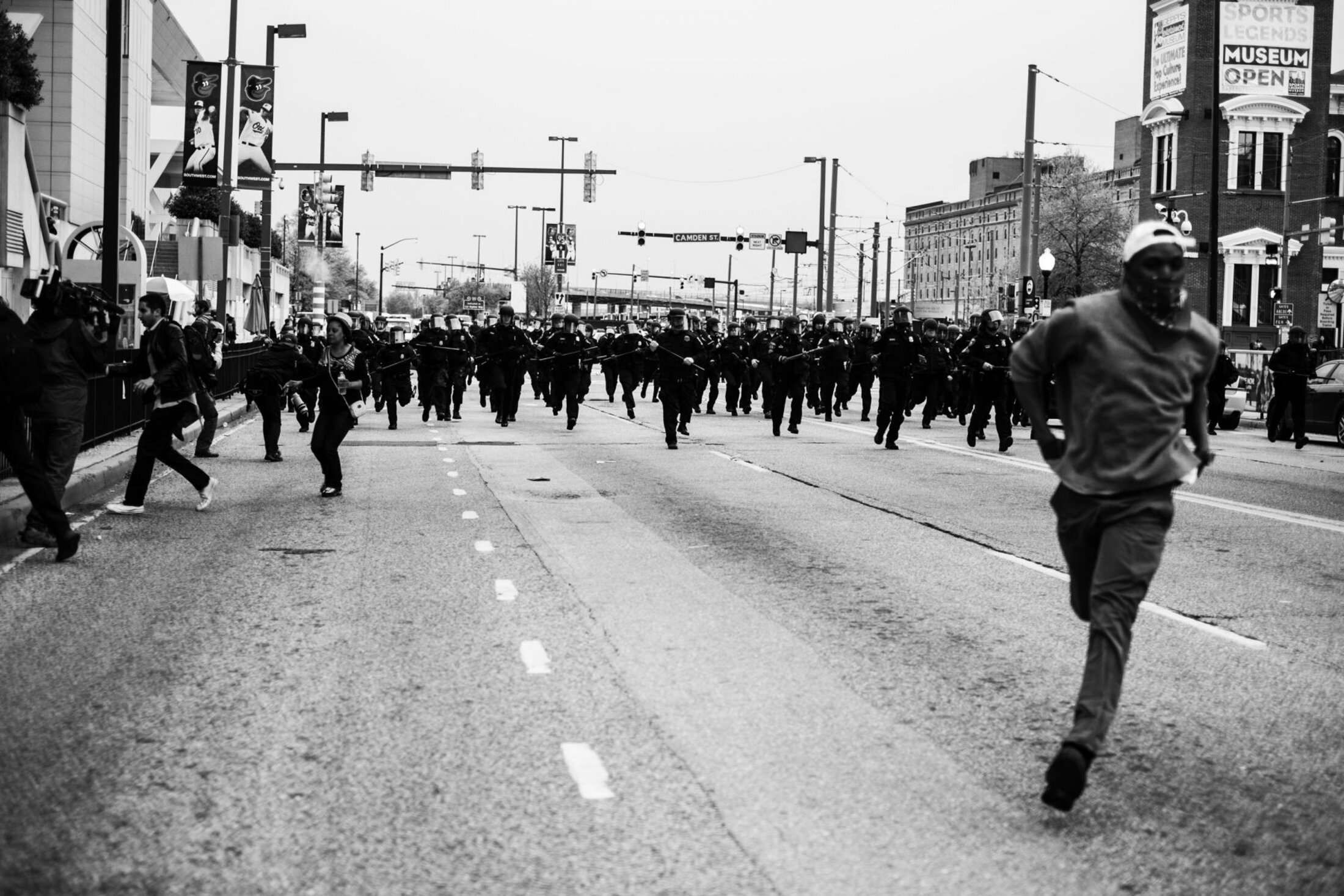 Tout se passe comme si la révolte passe par ce mouvement des corps qui, au lieu de reproduire les dispositions incorporées, procèdent au contraire à leur déconstruction publique. Au lieu de circuler sur la route en voiture ou en moto (p. 37, 40-41), on y marche, on y court, ensemble. En cela, le soulèvement de Baltimore rejoint tous les grands mouvements populaires: le peuple descend dans la rue et se réapproprie les communs de la cité.