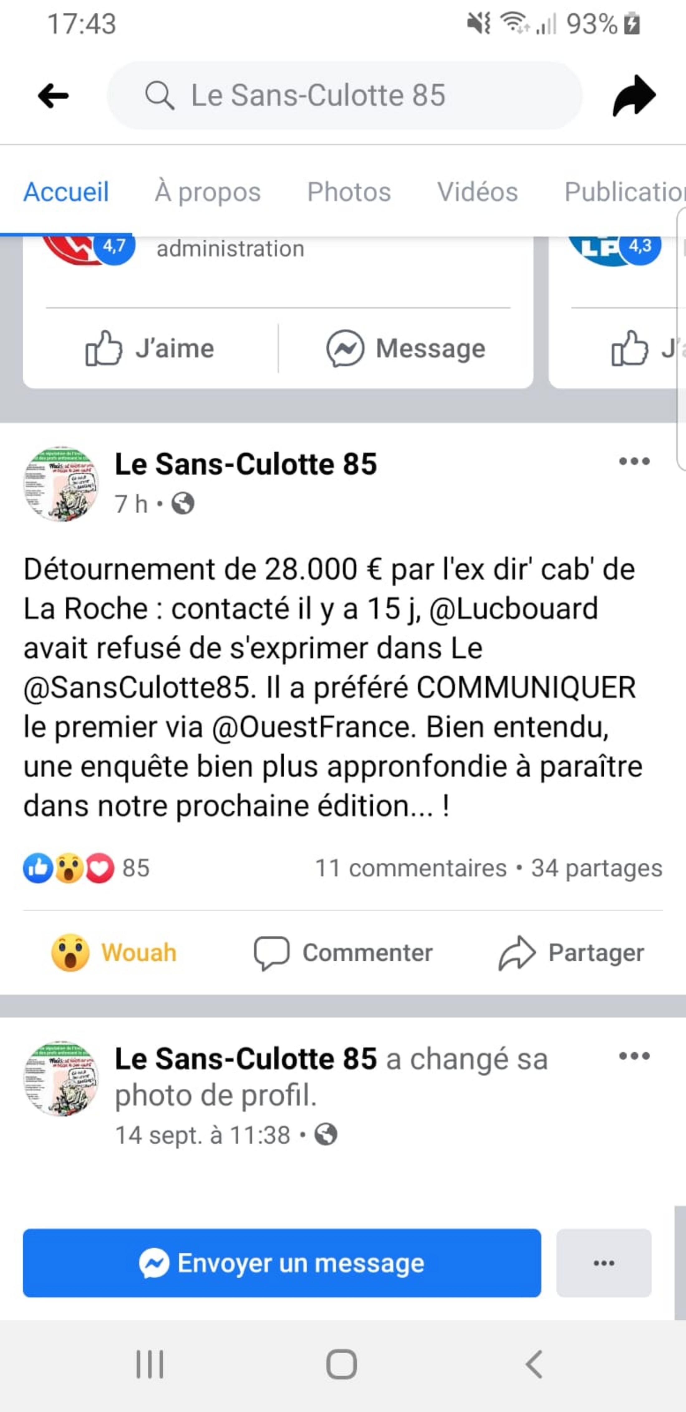 le directeur de cabinet de la mairie de La Roche sur Yon a détourné 30.000 Euro Pour M Bouard maire ce n'est qu'une bêtise la suite dans le Sans Culotte de Novembre prochain