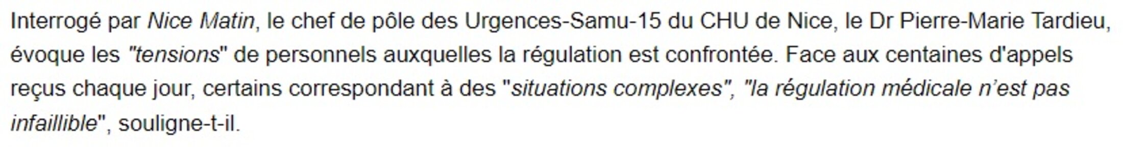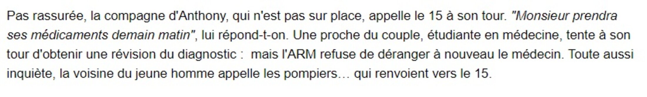 oui, j'ai entendu par une copine et puis lu dans les (certains ...) journaux pros l'histoire de ce jeune psychiatre qui a fait un AVC ... « refusé » par le SAMU ...