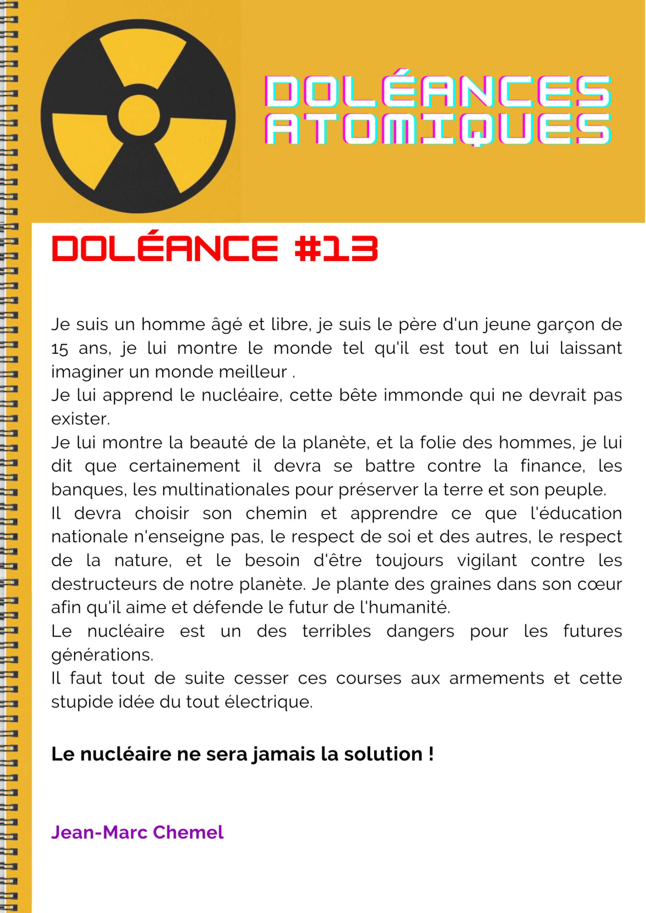 Je lui apprend le nucléaire, cette bête immonde qui ne devrait pas exister.