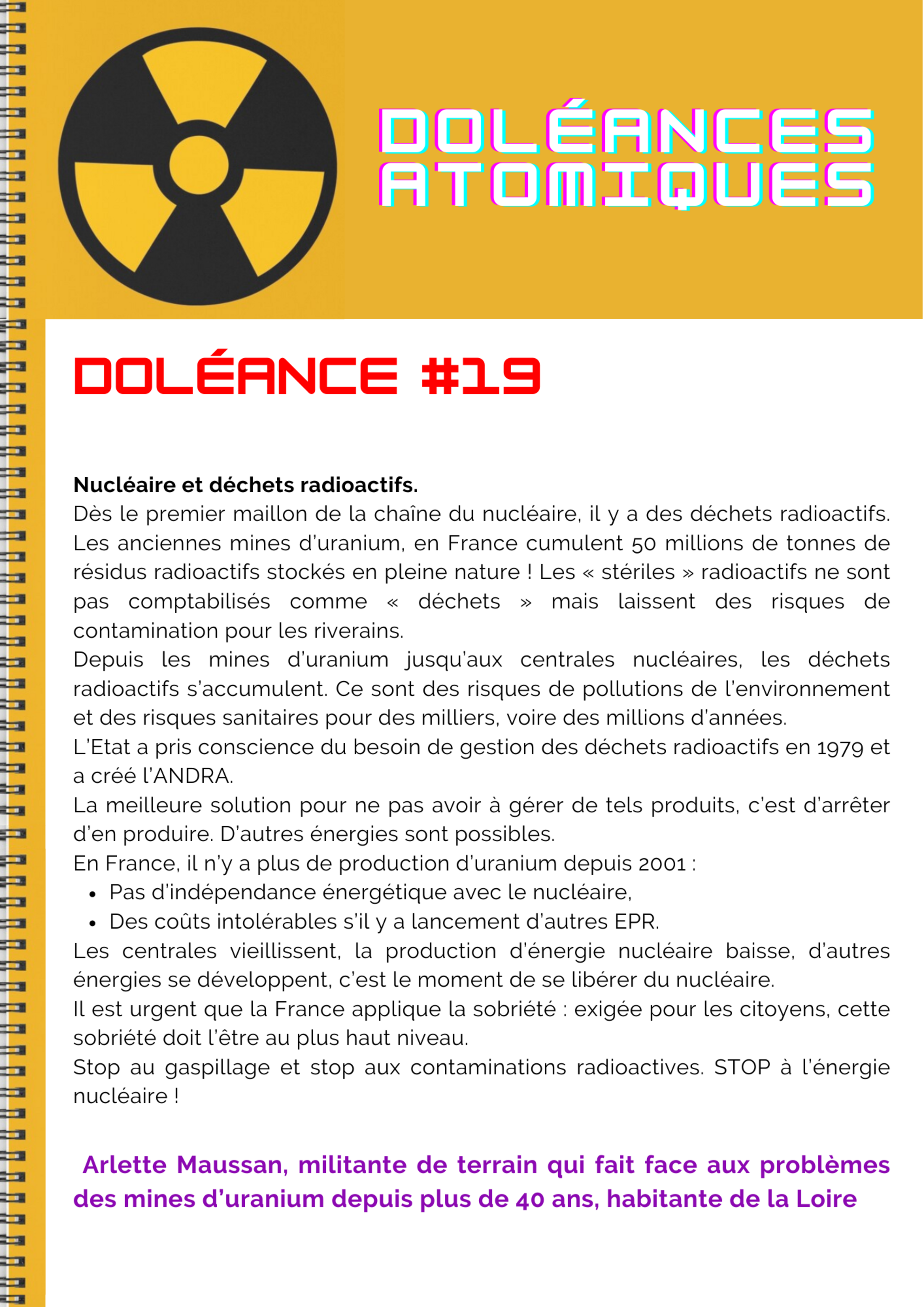 Arlette Maussan, militante de terrain qui fait face aux problèmes des mines d’uranium depuis plus de 40 ans, habitante de la Loire