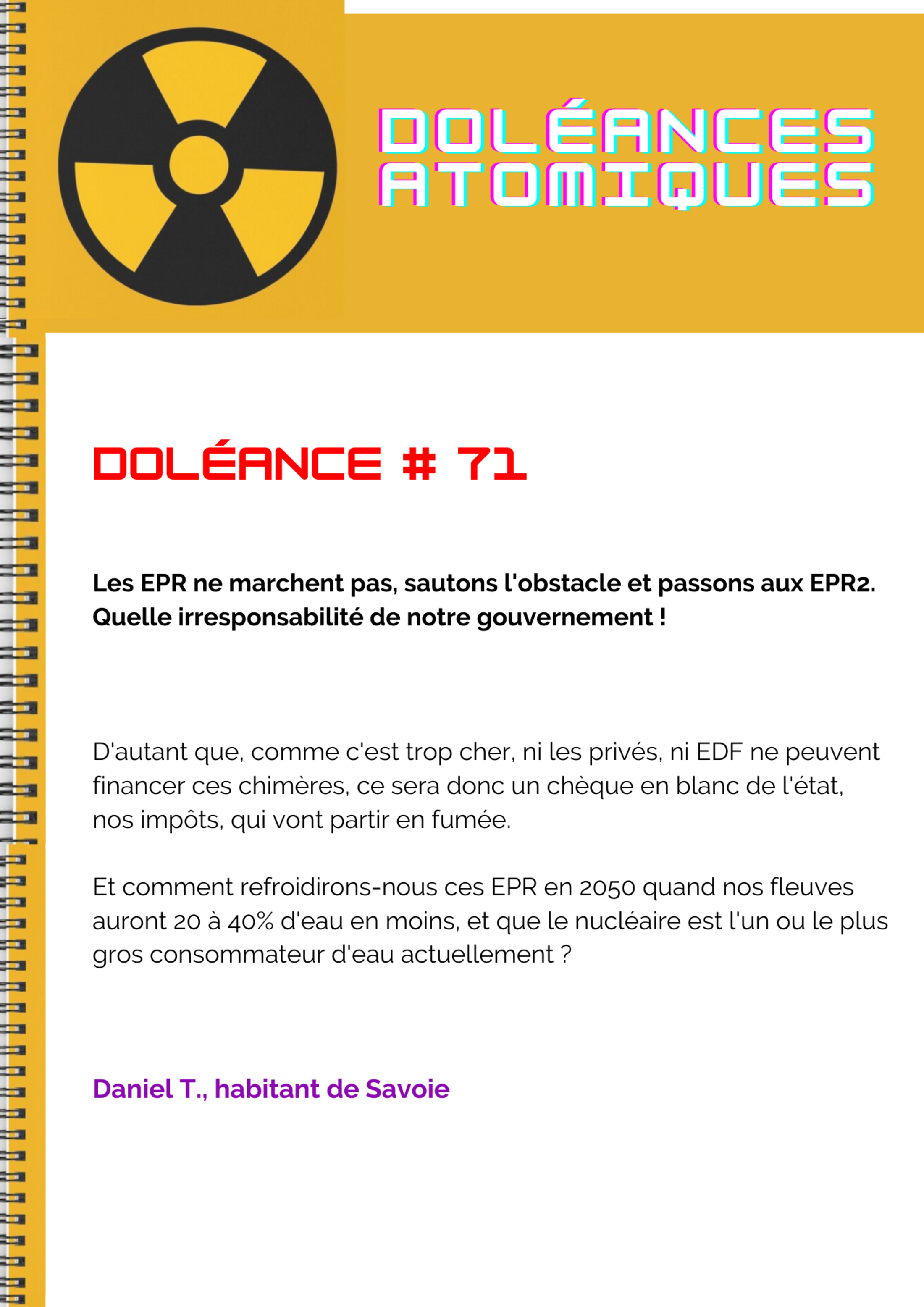 Les EPR ne marchent pas, sautons l'obstacle et passons aux EPR2. Quelle irresponsabilité de notre gouvernement !