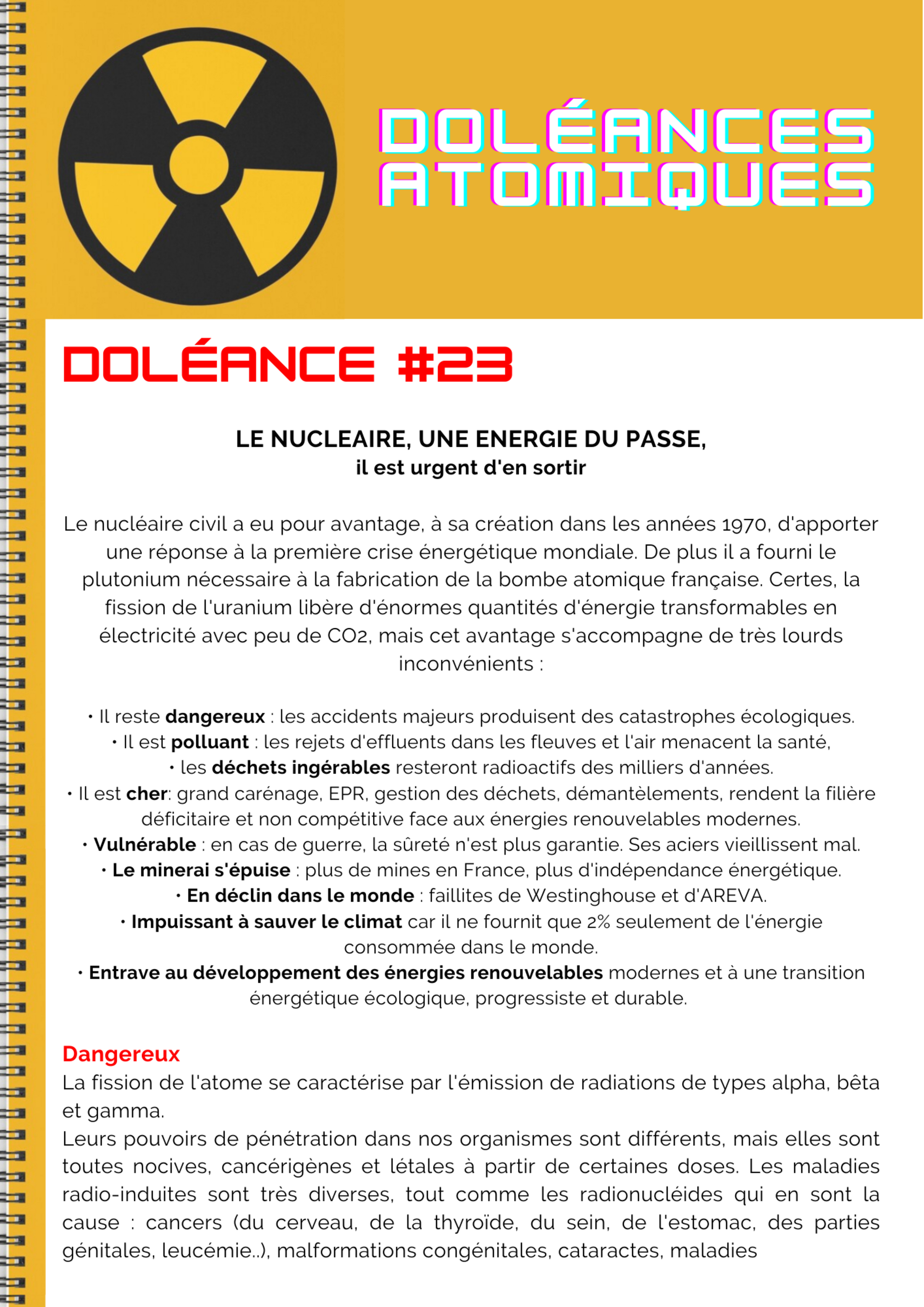 Merci de nous faire parvenir vos doléances à l'adresse doleancesatomiques@laposte.net dans un fichier (texte, son, image, vidéo)