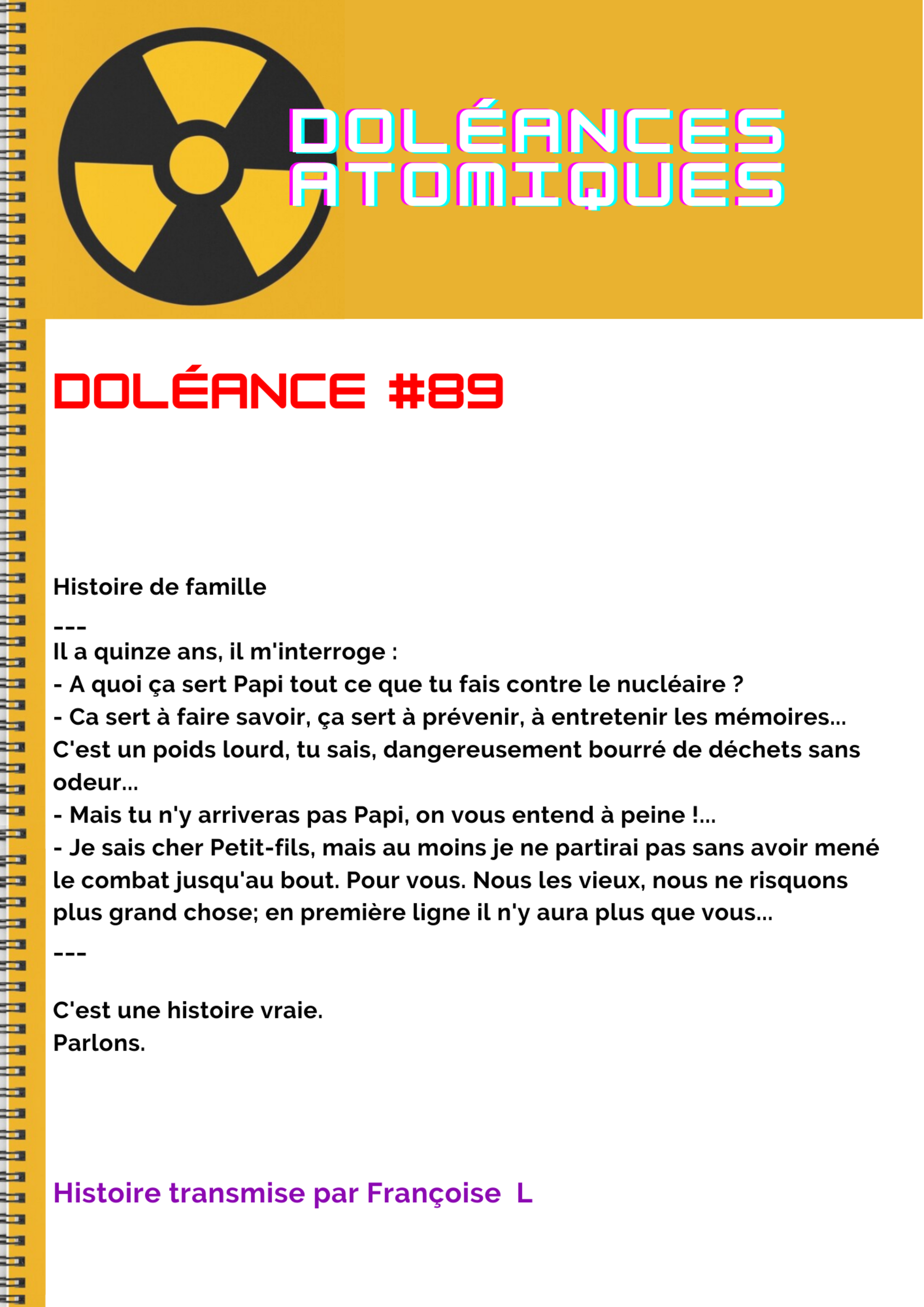 - A quoi ça sert Papi tout ce que tu fais contre le nucléaire ?