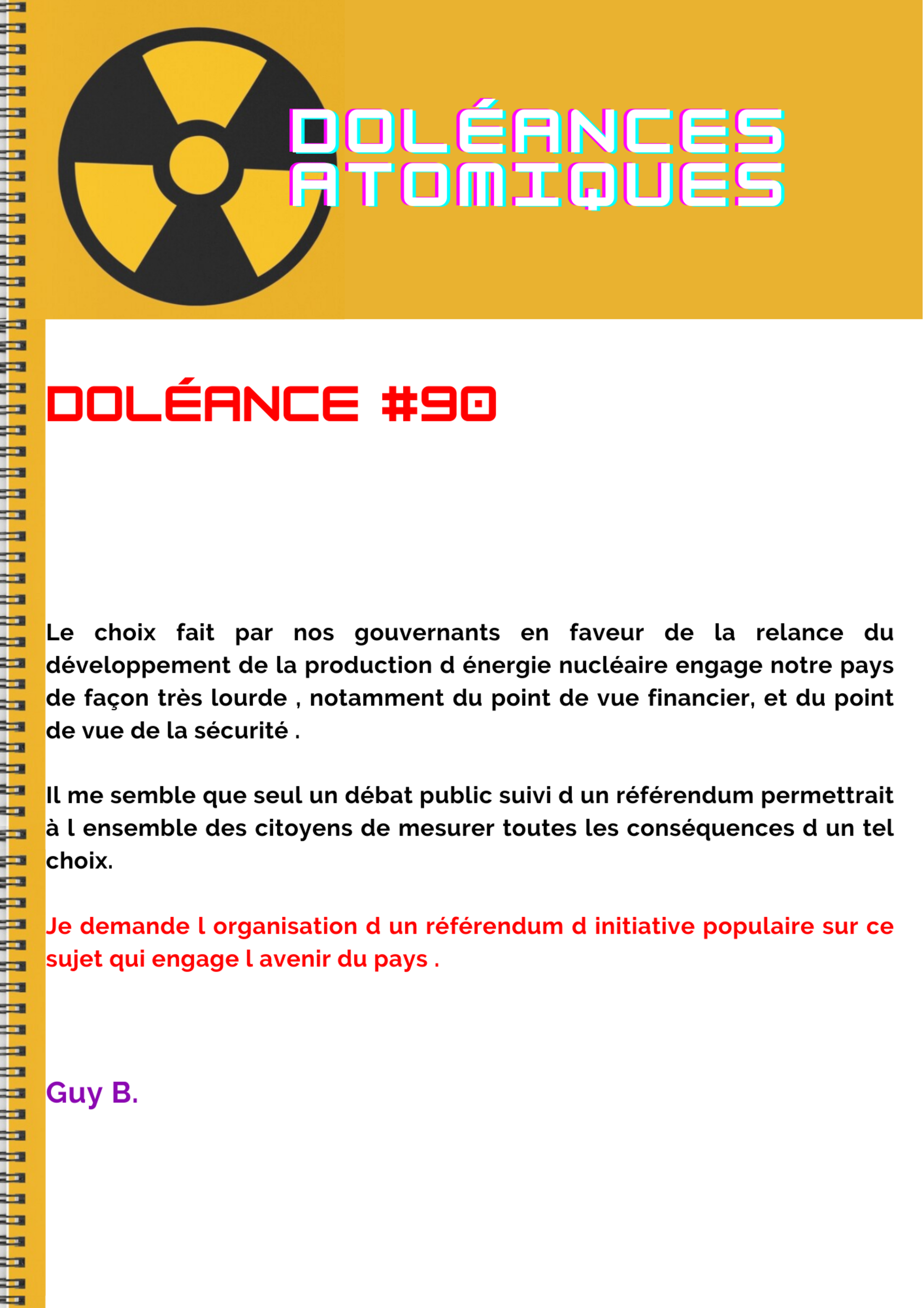 Merci de nous faire parvenir vos doléances à l'adresse doleancesatomiques@laposte.net dans un fichier (texte, son, image, vidéo)