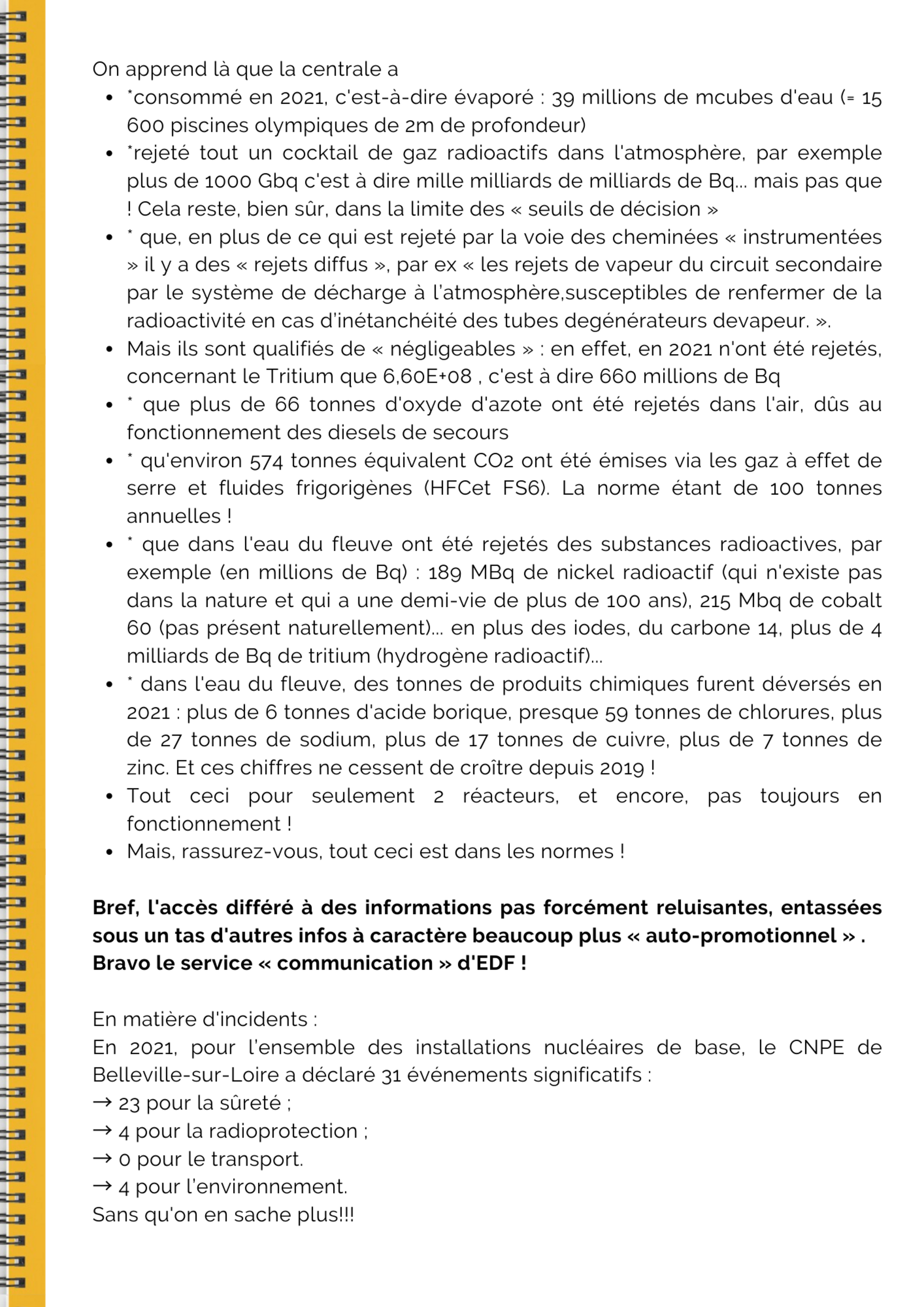 Allez, je m'en vais voir sur le site de la centrale de Belleville, ce qui a été rejeté en 2021 !